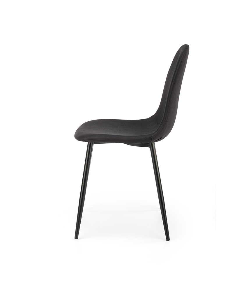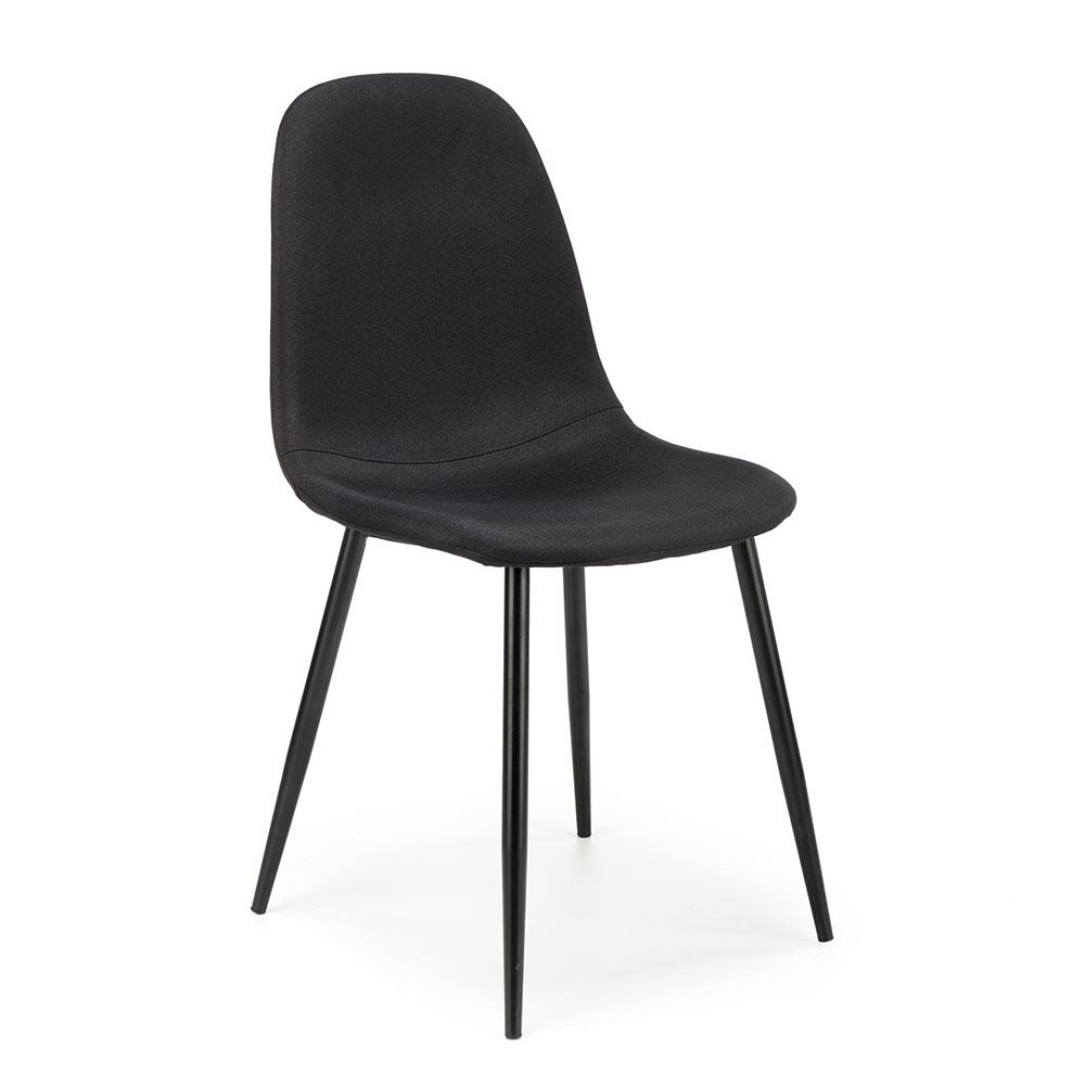 Черен стол, изработен от текстил и метал с изчистени линии и модерен дизайн.