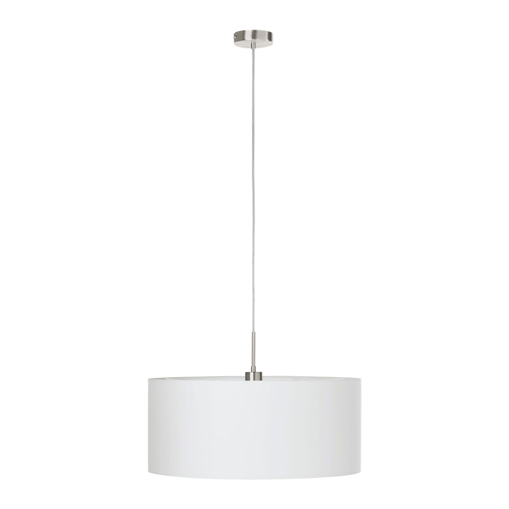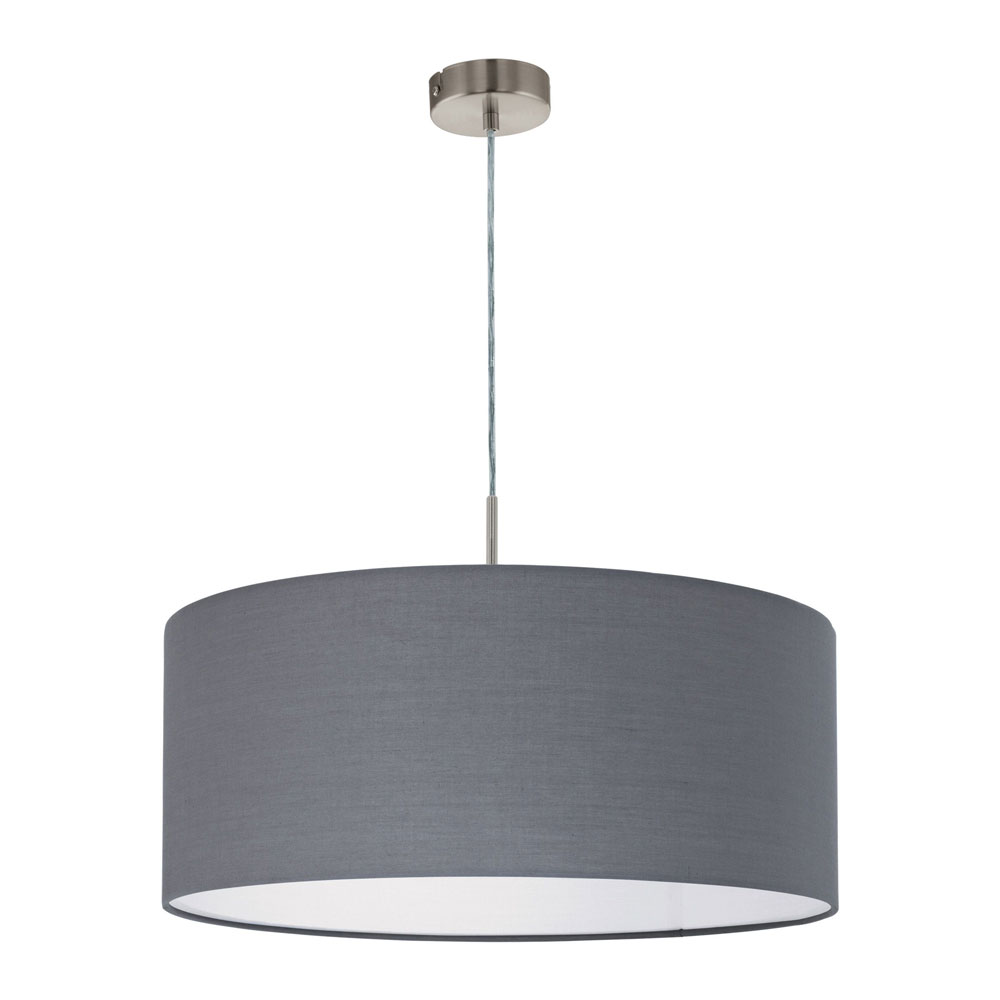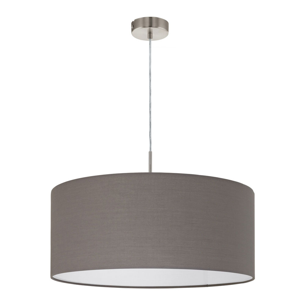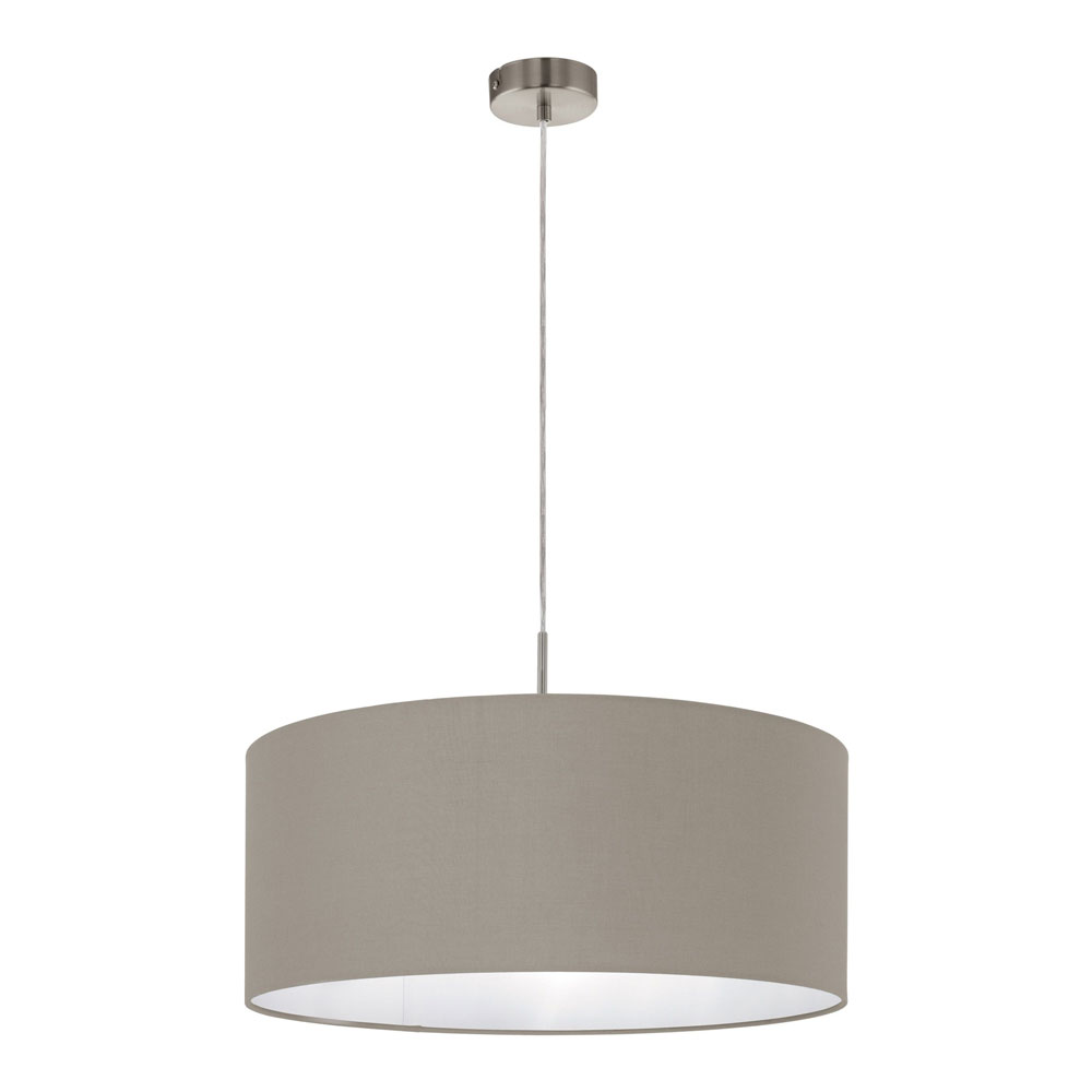 Модерен пендел, изработен от стомана в цвят никел мат и кръгло тяло от текстил, Eglo, серия Pasteri.