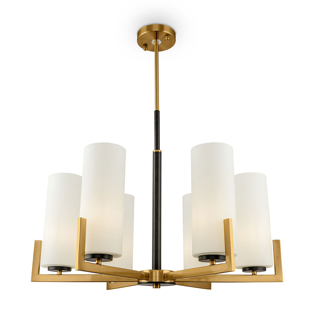 Модерен полилей с метална конструкция в цвят месинг и черно с цилиндрични стъклени тела в бял цвят Maytoni, серия Fortano.
