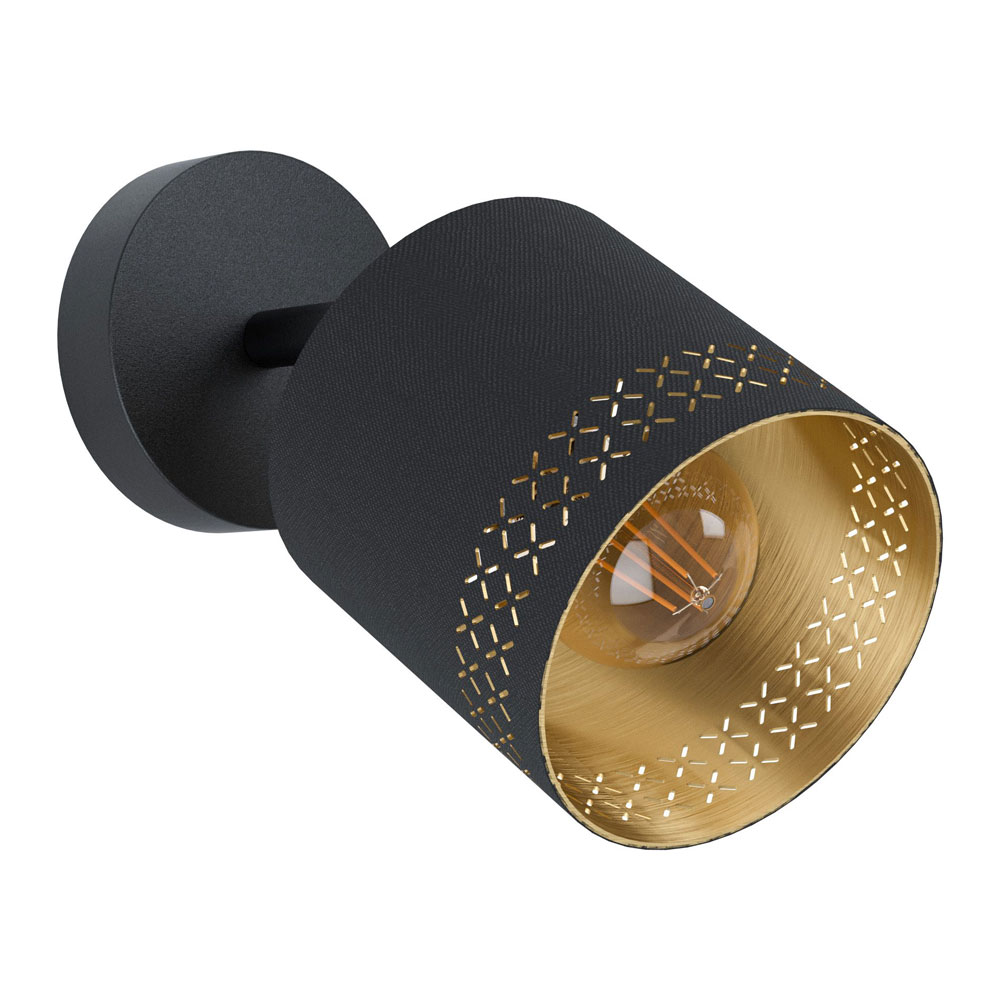 Модерен спот в черно и златисто, изработен от стомана и текстил с красиви прорези Eglo, серия Esteperra.