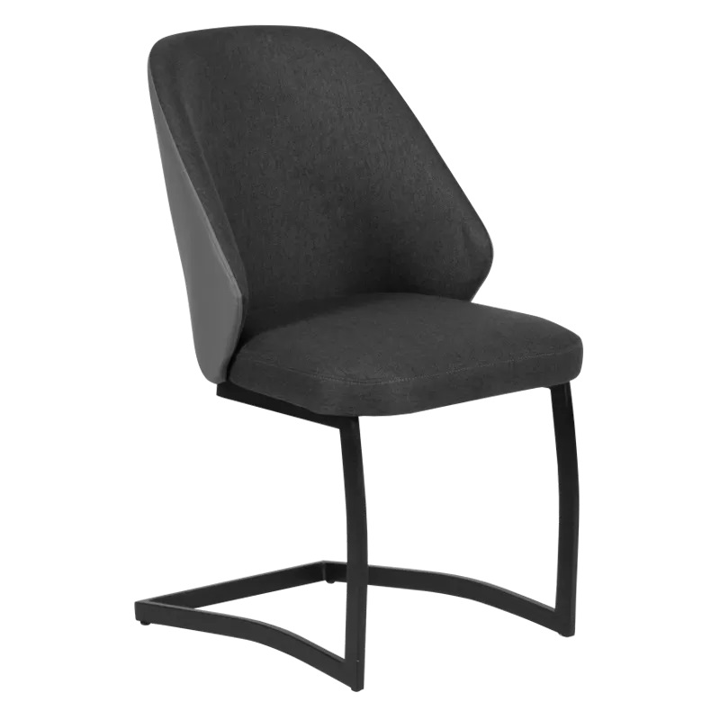 Модерен трапезен стол от текстил и еко кожа с метални крака.