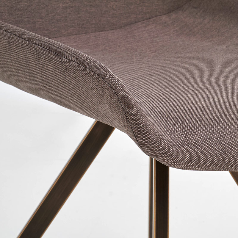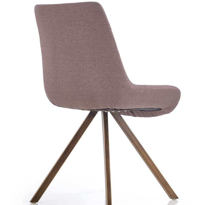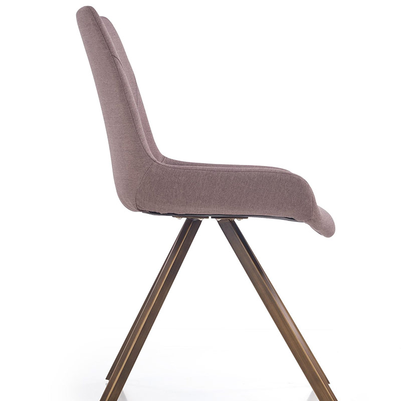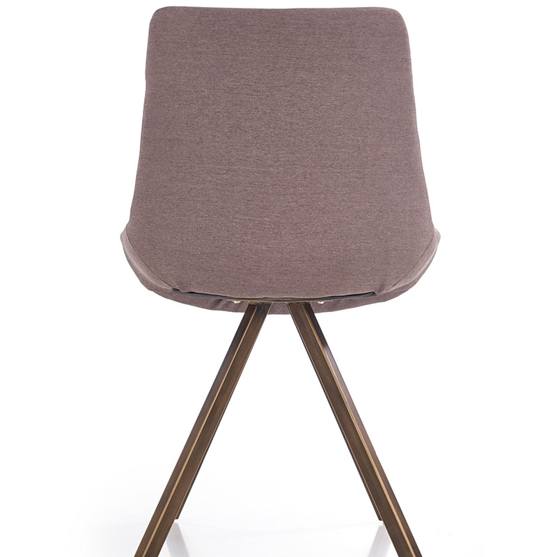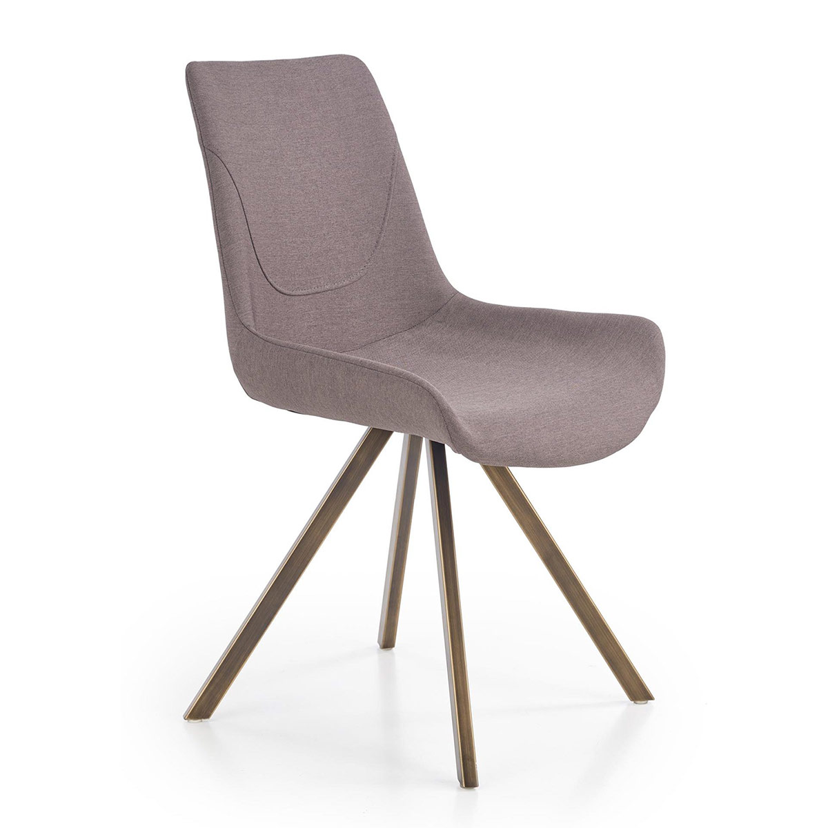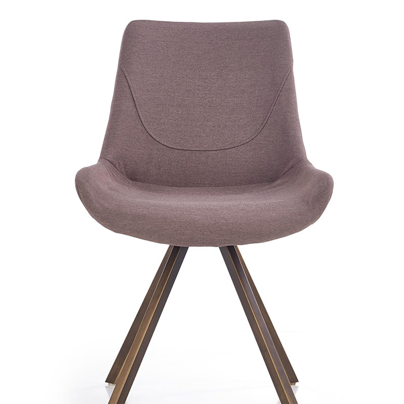 Модерен сиво-кафяв стол с метални крака в цвят античен бронз.