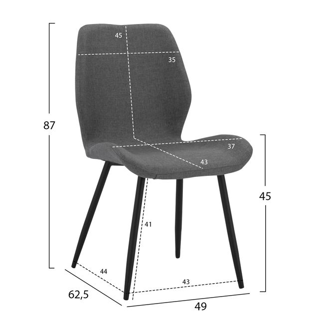 Модерен трапезен стол с текстилна дамаска - сив цвят - размери