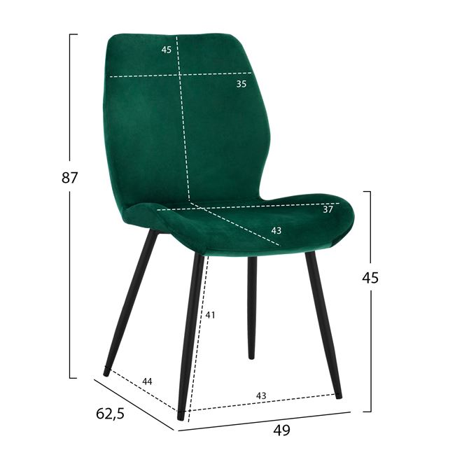 Модерен трапезен стол с кадифена дамаска - зелен цвят - размери