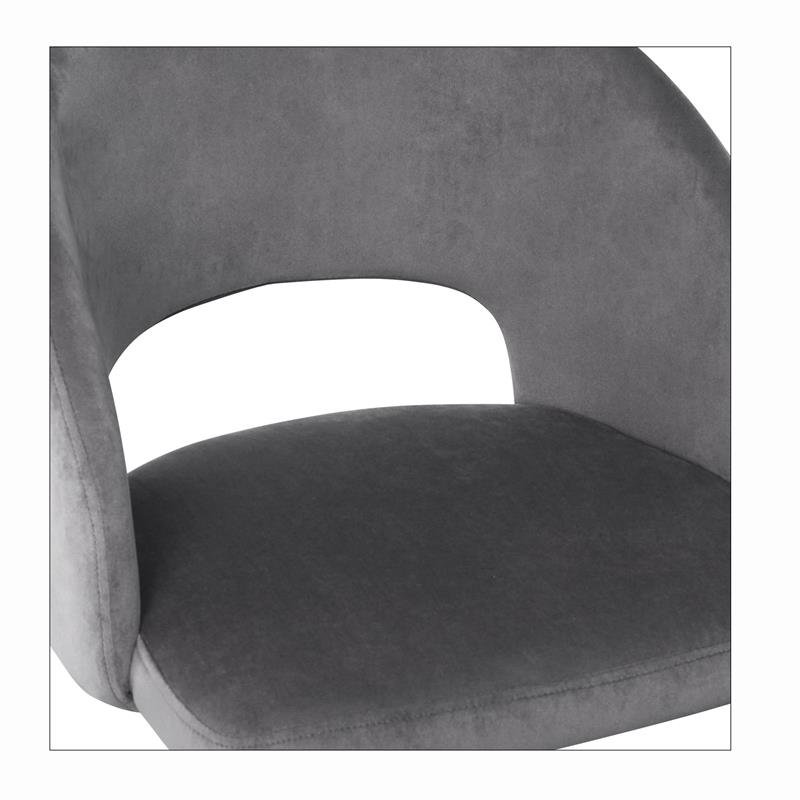 Модерен трапезен стол от кадифе и метал в сив цвят - детайл
