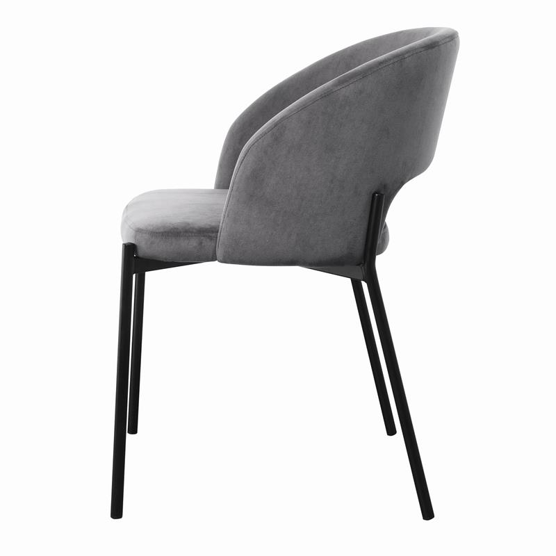 Модерен трапезен стол от кадифе и метал в сив цвят - отстрани