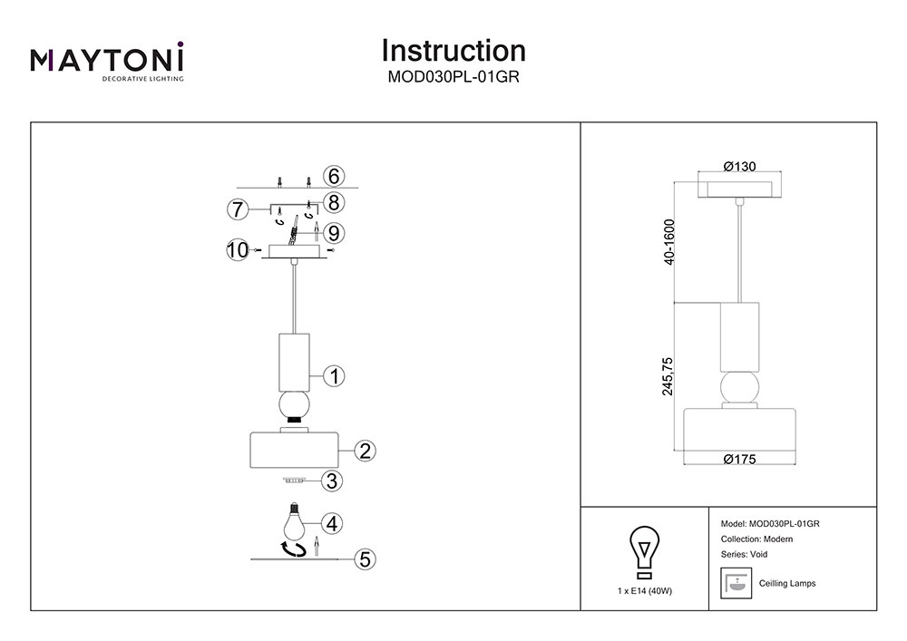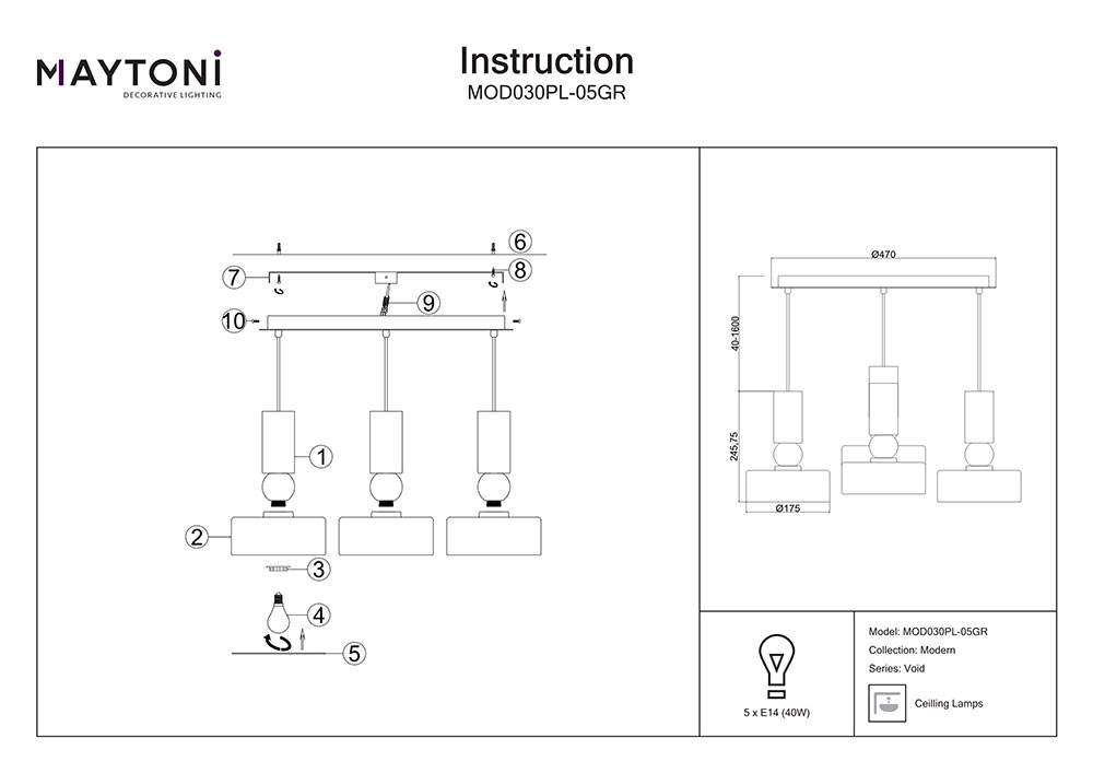 Модерен в пендел в сив цвят Void с 1 тяло - схема