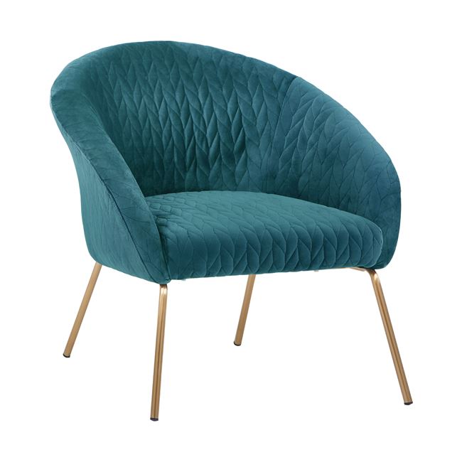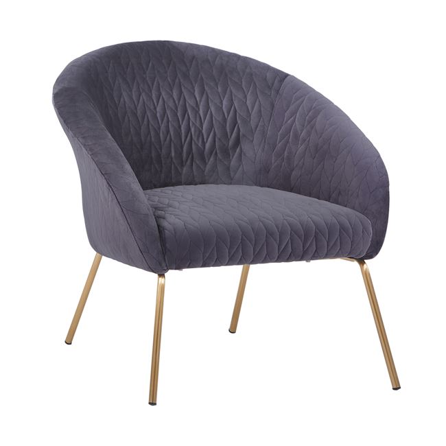 Модерното кресло е изработено с метални крака в златисто и кадифена дамаска.
