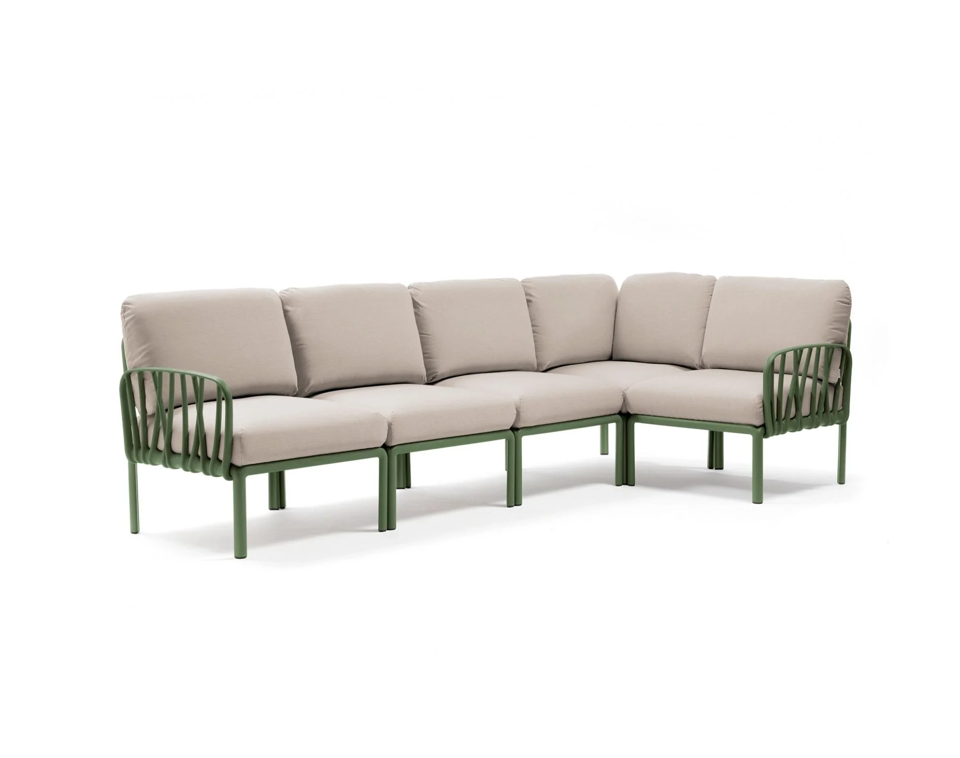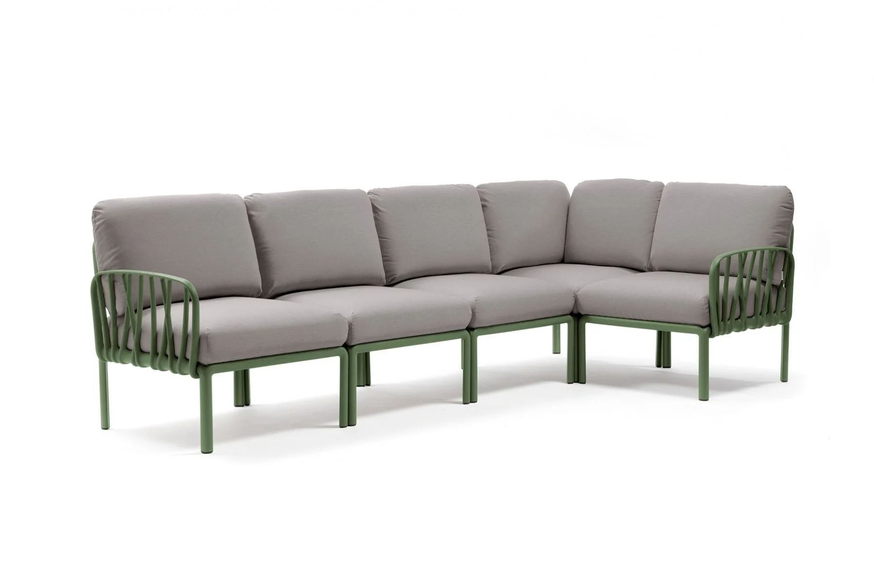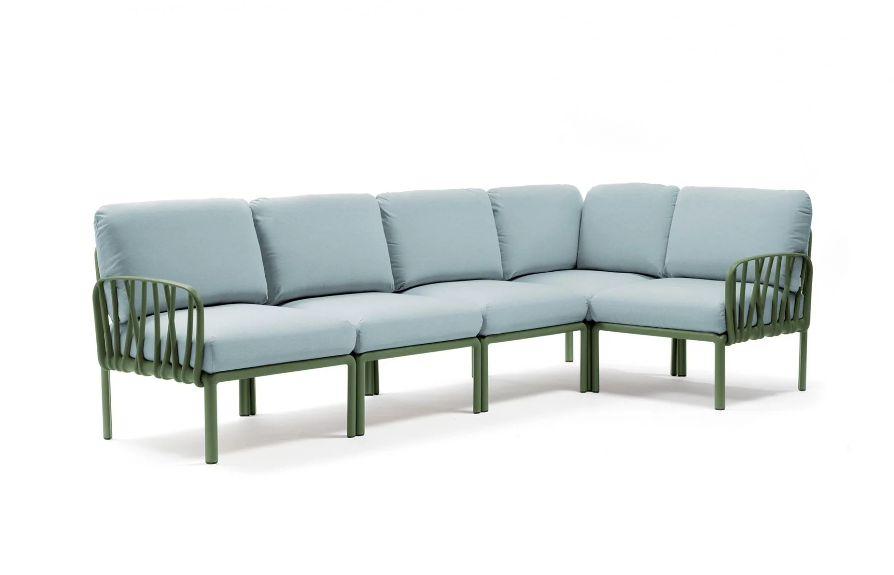 Градински диван D005 е практично решение за обзавеждане на открити пространства. Модулната му конструкция позволява създаване на различни конфигурации – прави или ъглови композиции с различна дължина, което го прави подходящ както за по-компактни тераси, така и за по-просторни зони за отдих или заведения.