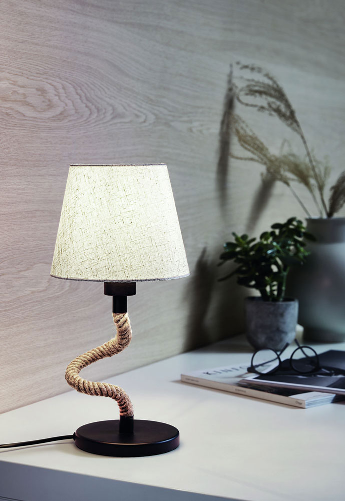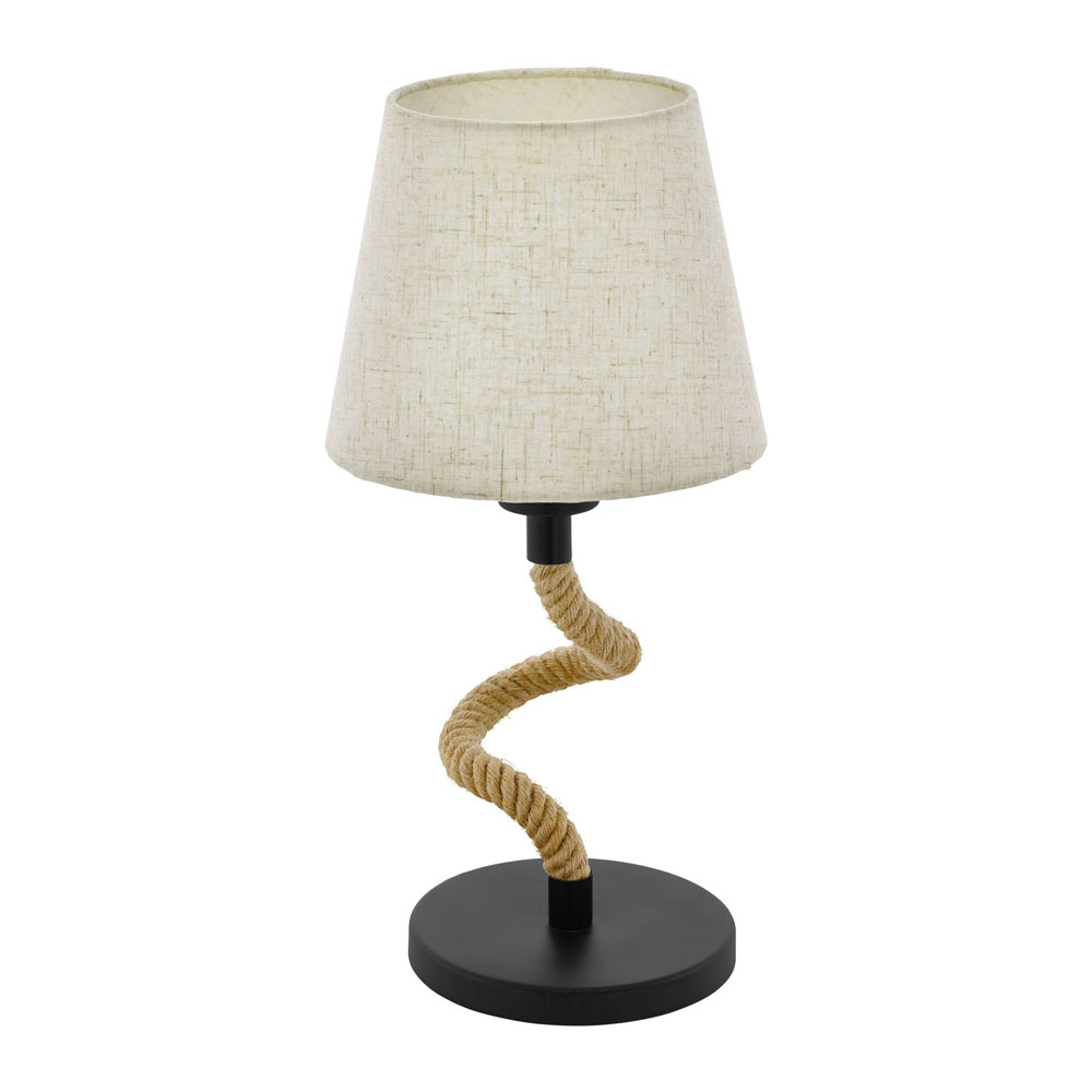 Настолна лампа с абажур от текстил в цвят крем върху поставка от черен метал с извито въже Eglo, серия Rampside.