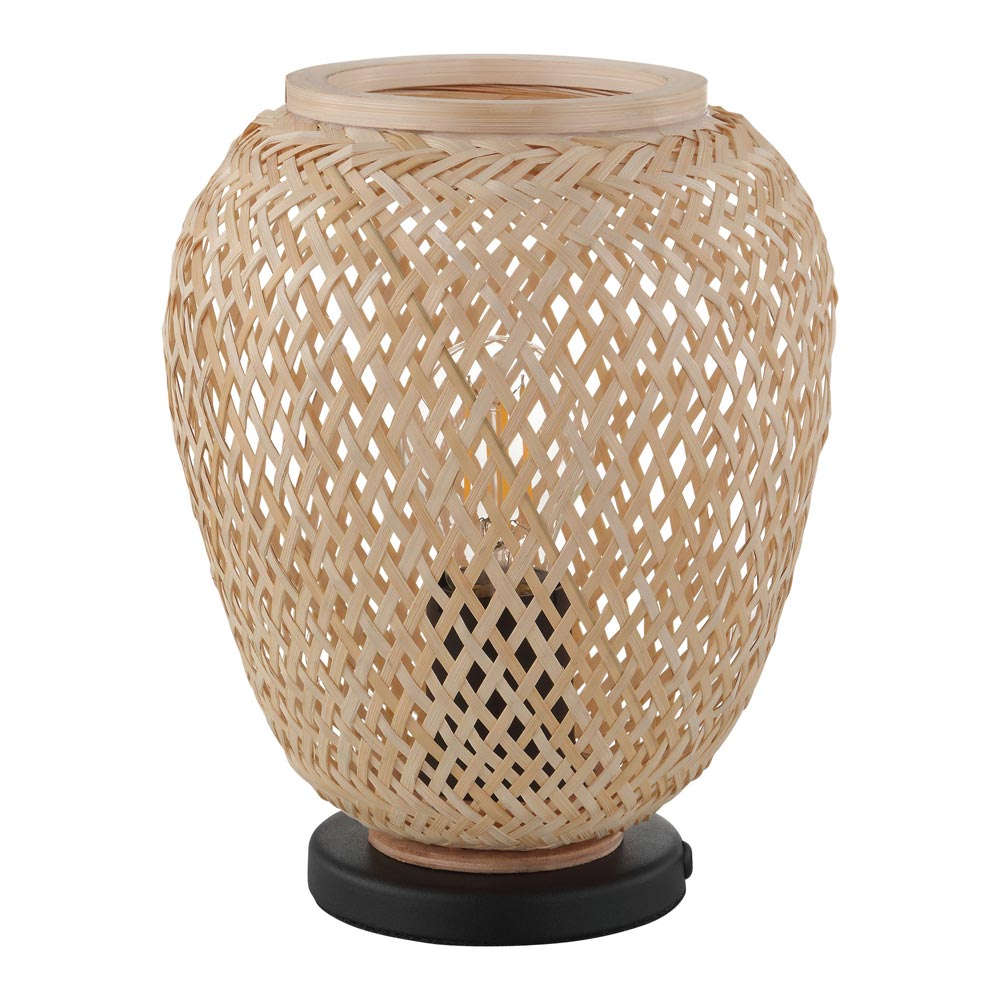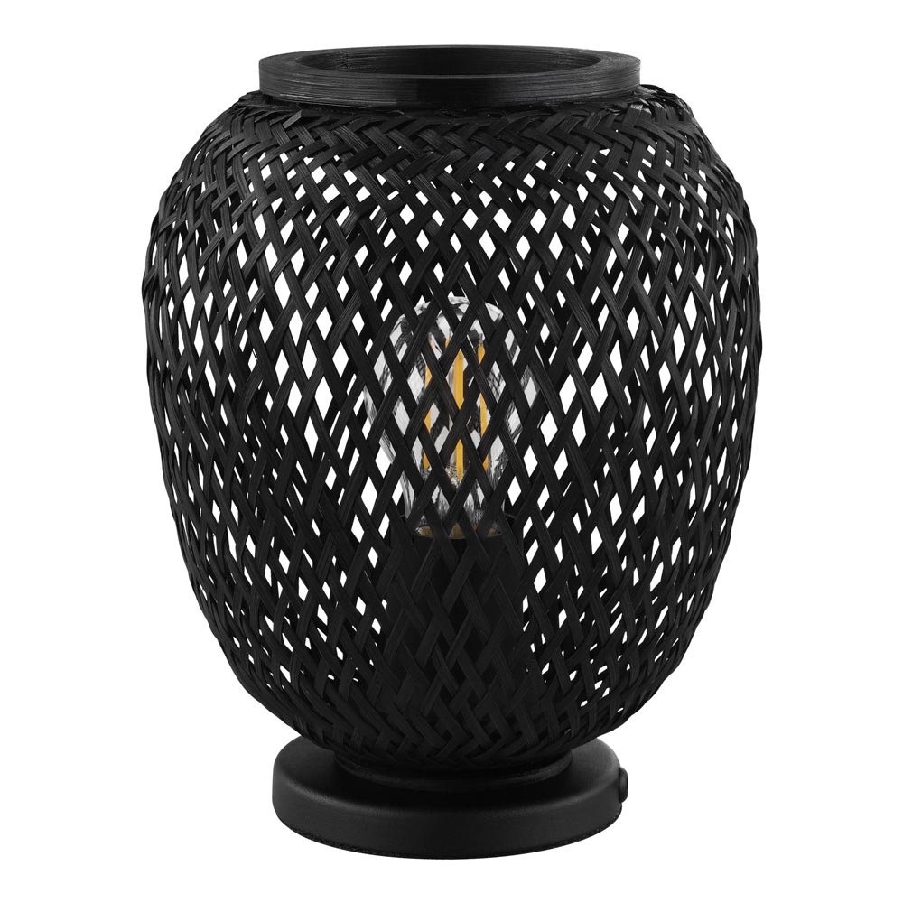 Настолна лампа, изработена от стомана в черно с тяло от плетено дърво, Eglo, серия Dembleby.