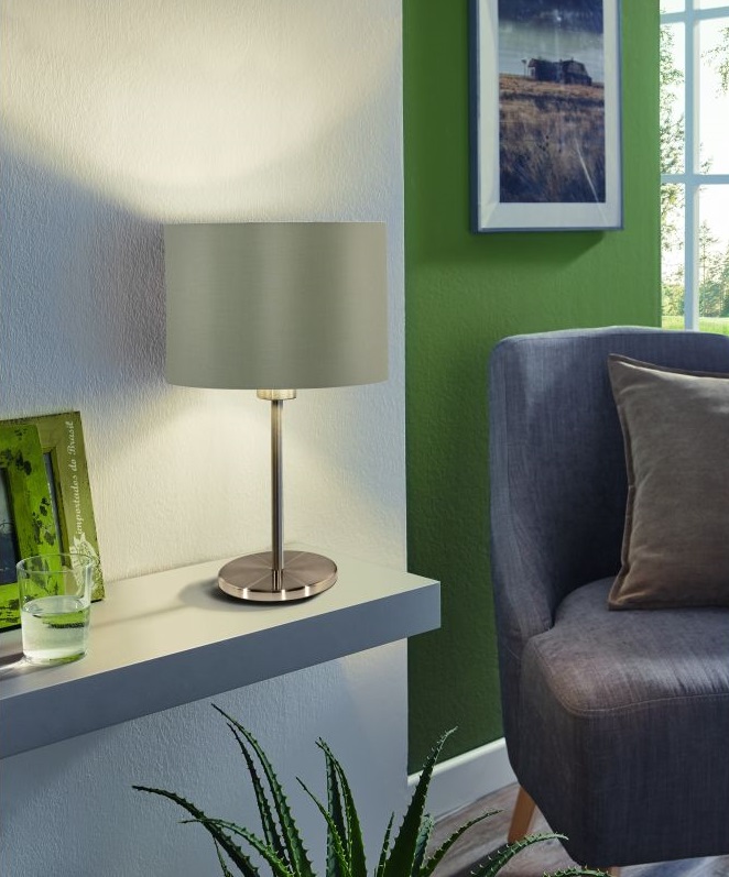 Нощна лампа в таупе и златисто, изработена от стомана (никел сатен) и текстил,  Eglo серия Maserlo.