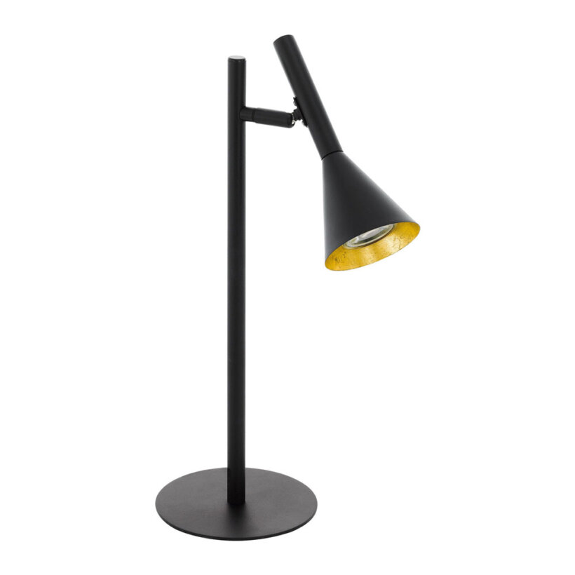 Настолна LED лампа, изработена от стомана с конусовидно тяло в черно и златисто и функция димиране на степени, Eglo, серия Cortaderas.