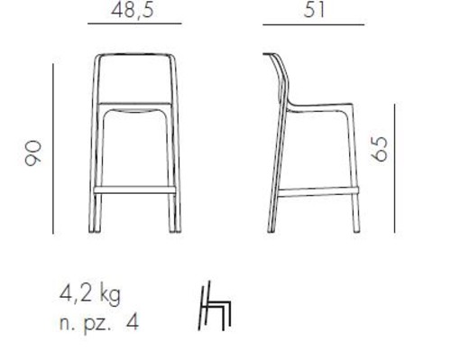 Нисък бар стол от полипропилен с мрежеста облегалка серия Нико.