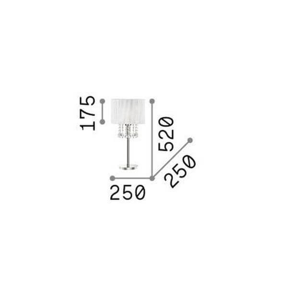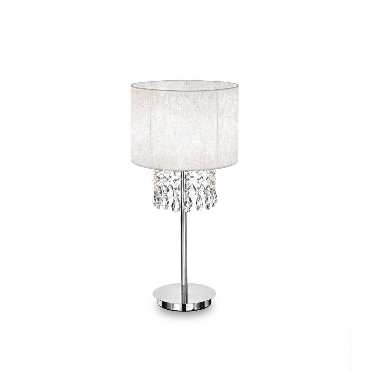 Стилна нощна лампа бяло, изработена с метално тяло и PVC шапка с кристални висулки Ideal Lux, серия Opera.