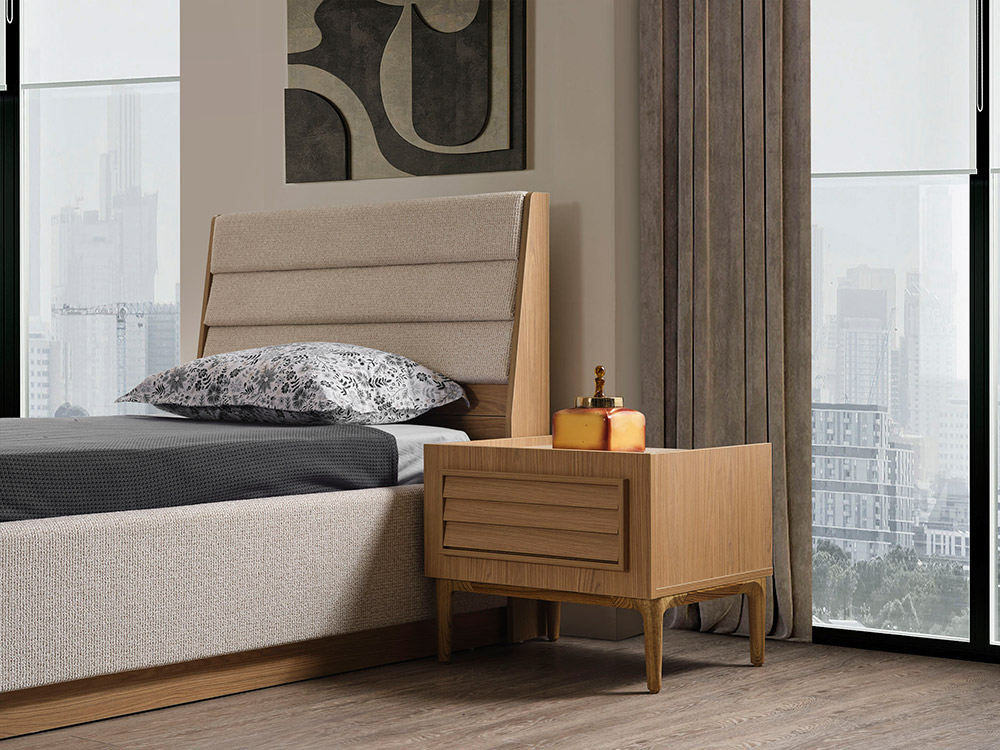 Моделът предлага удобно пространство за съхранение на всичко необходимо до леглото, осигурявайки лесен достъп и подреденост.
