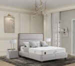 Иновативният дизайн включва тапицирано чело, което се изтегля напред, разкривайки скрито чекмедже за допълнително съхранение.