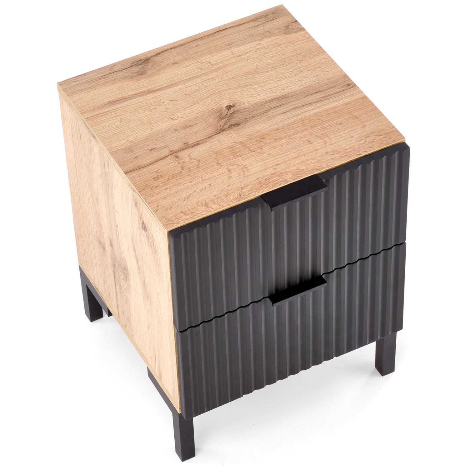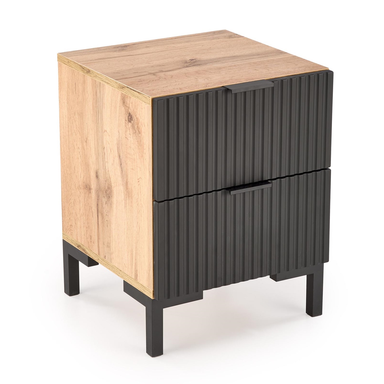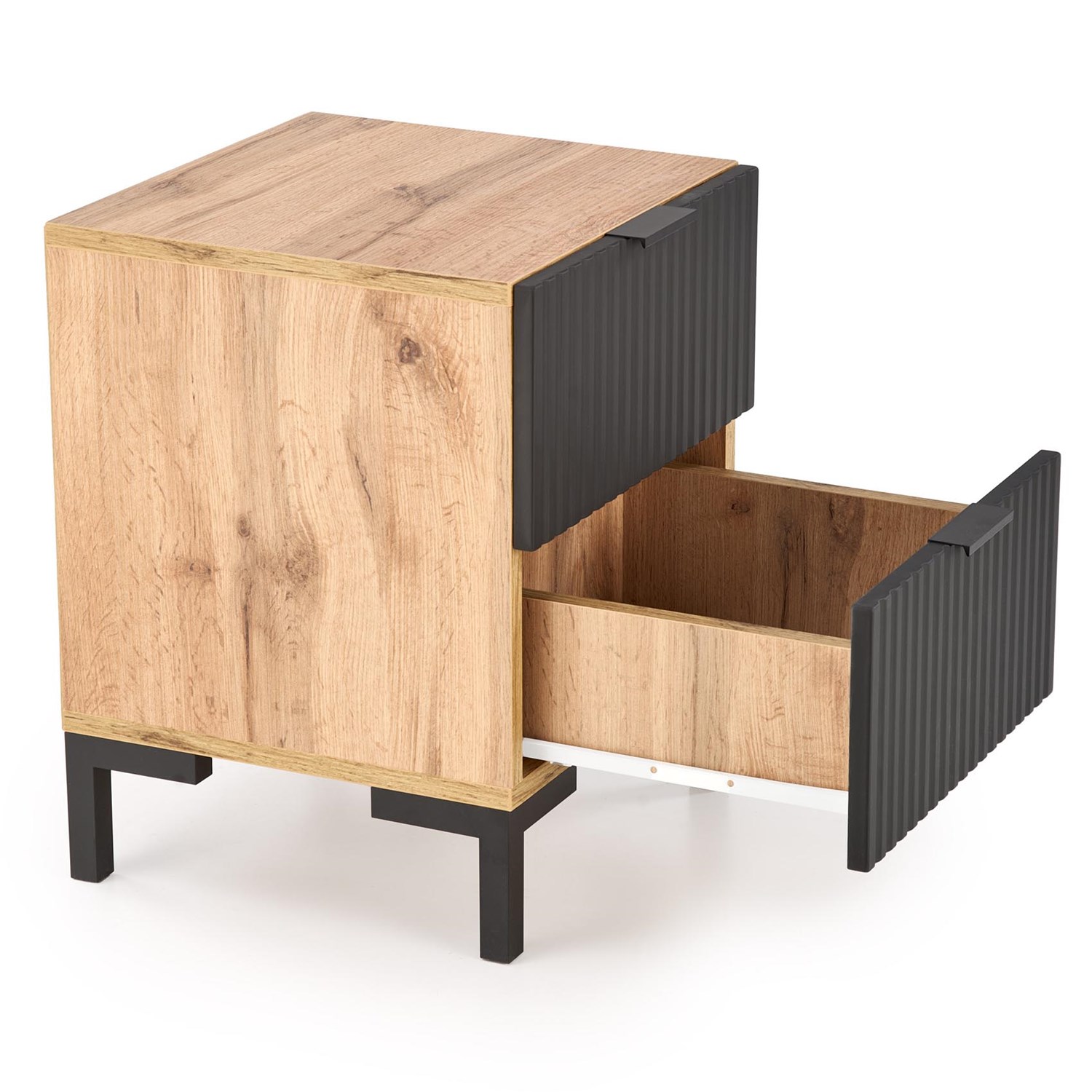 Комбинацията от дъб крафт и черен релефен фронт придава елегантност и характер.