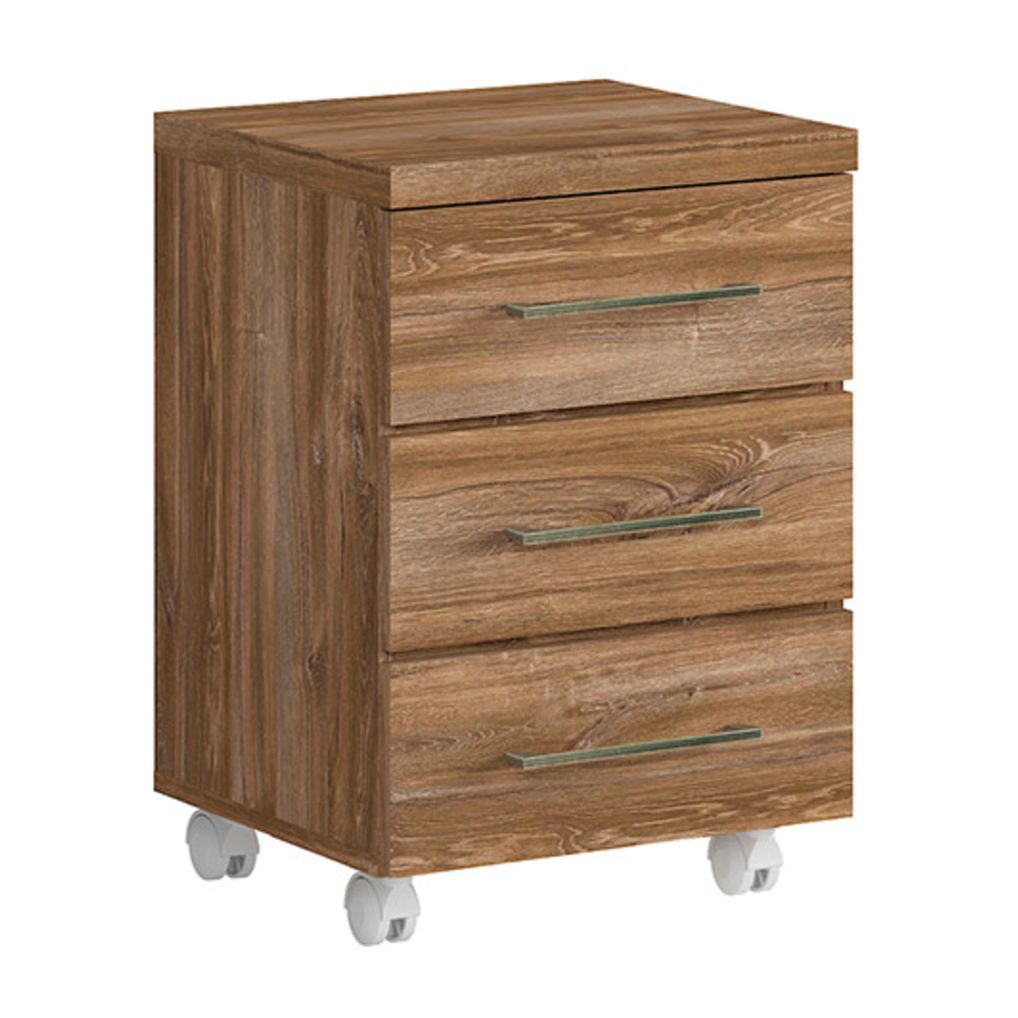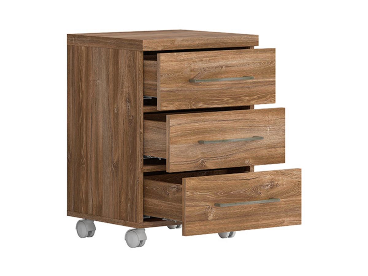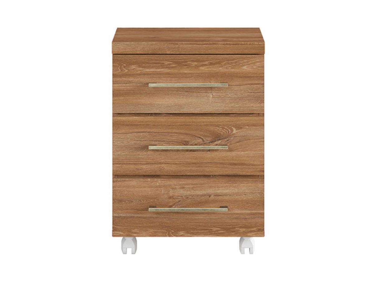 Офис контейнер с три чекмеджета в дървесен цвят дъб стърлинг, изработен от ПДЧ, модулна система Гент.