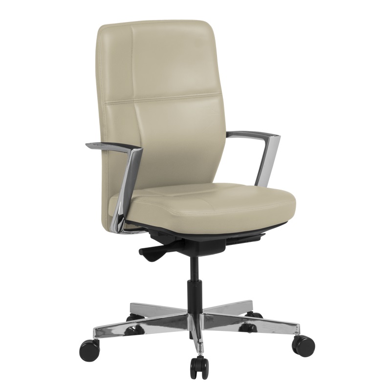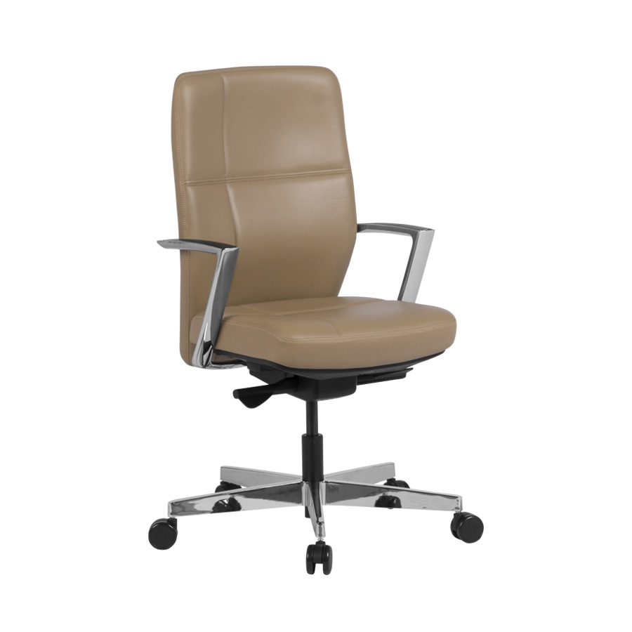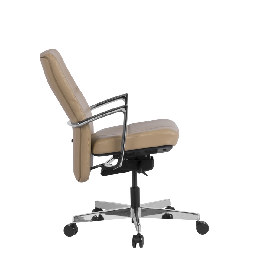 Работен офис стол от естествена кожа в бежов цвят   наклон
