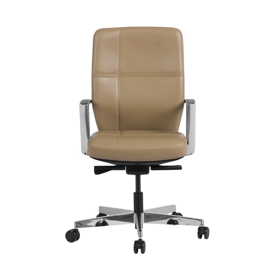 Работен офис стол от естествена кожа в бежов цвят - отпред