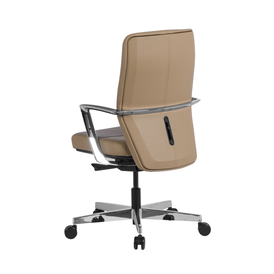 Работен офис стол от естествена кожа в бежов цвят - отзад