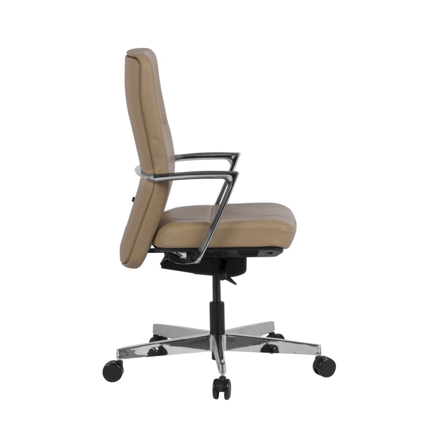 Работен офис стол от естествена кожа в бежов цвят - странично