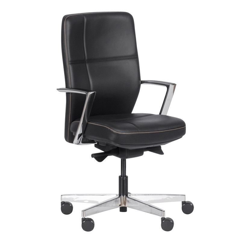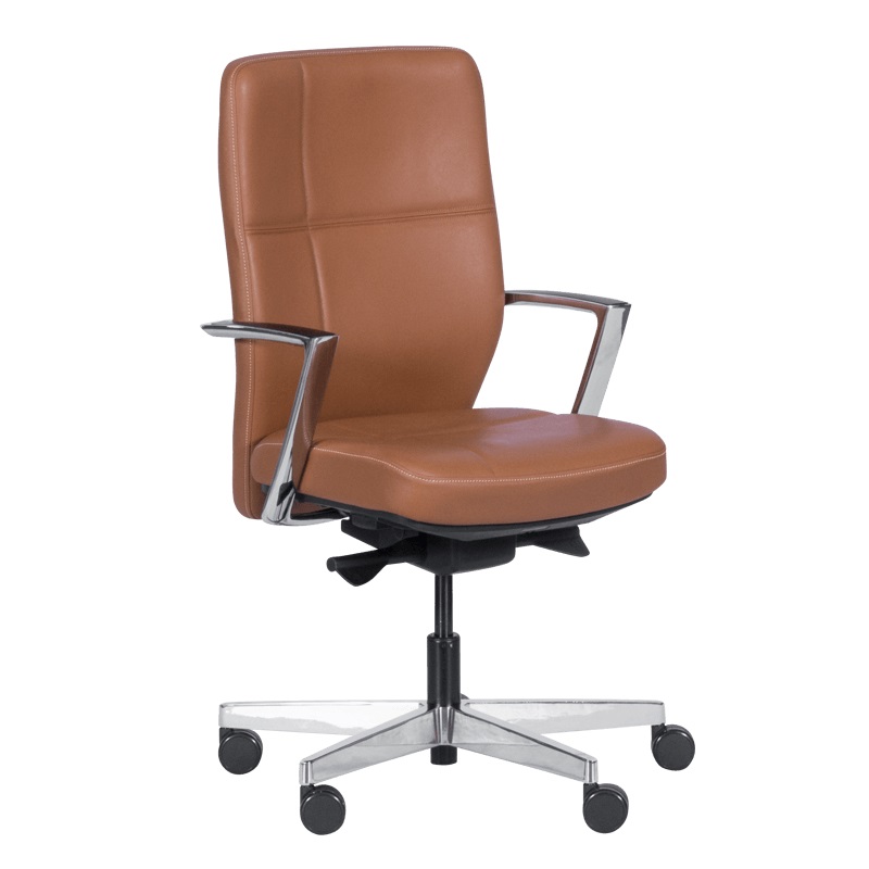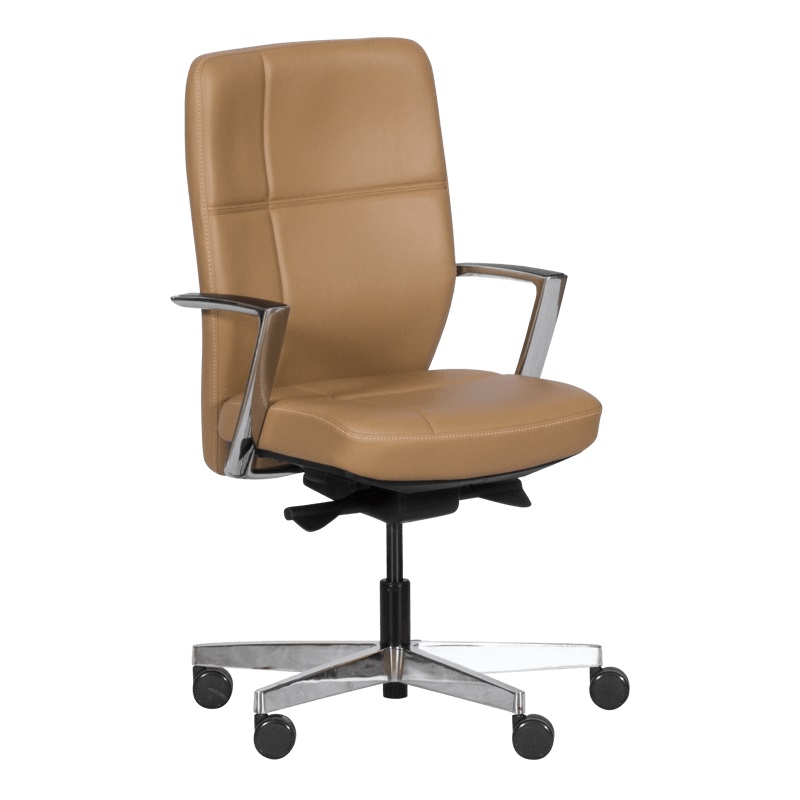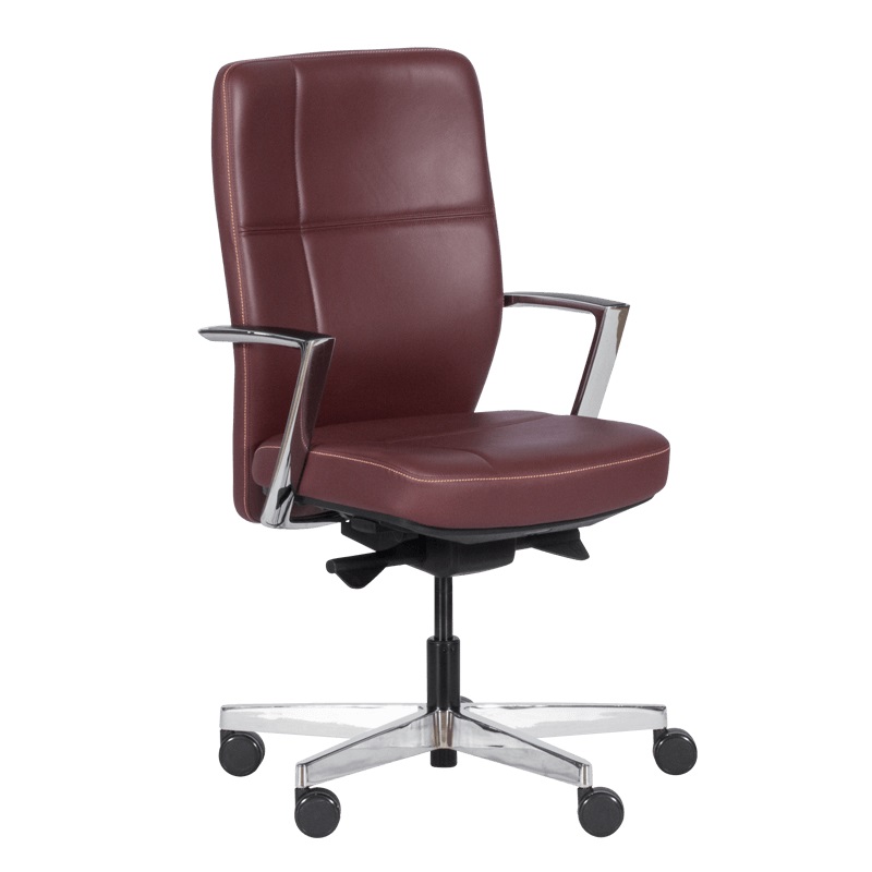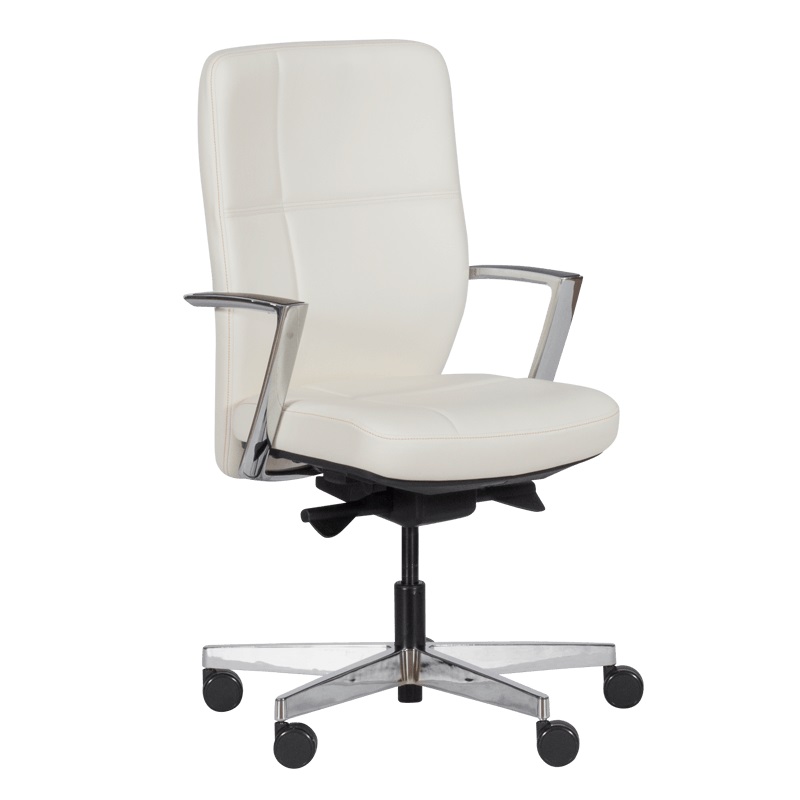 Работен офис стол от естествена кожа, предлагащ се в седем стилни цвята – бежов, бежово-кафяв, крем, бял, черен, кафе и бордо.