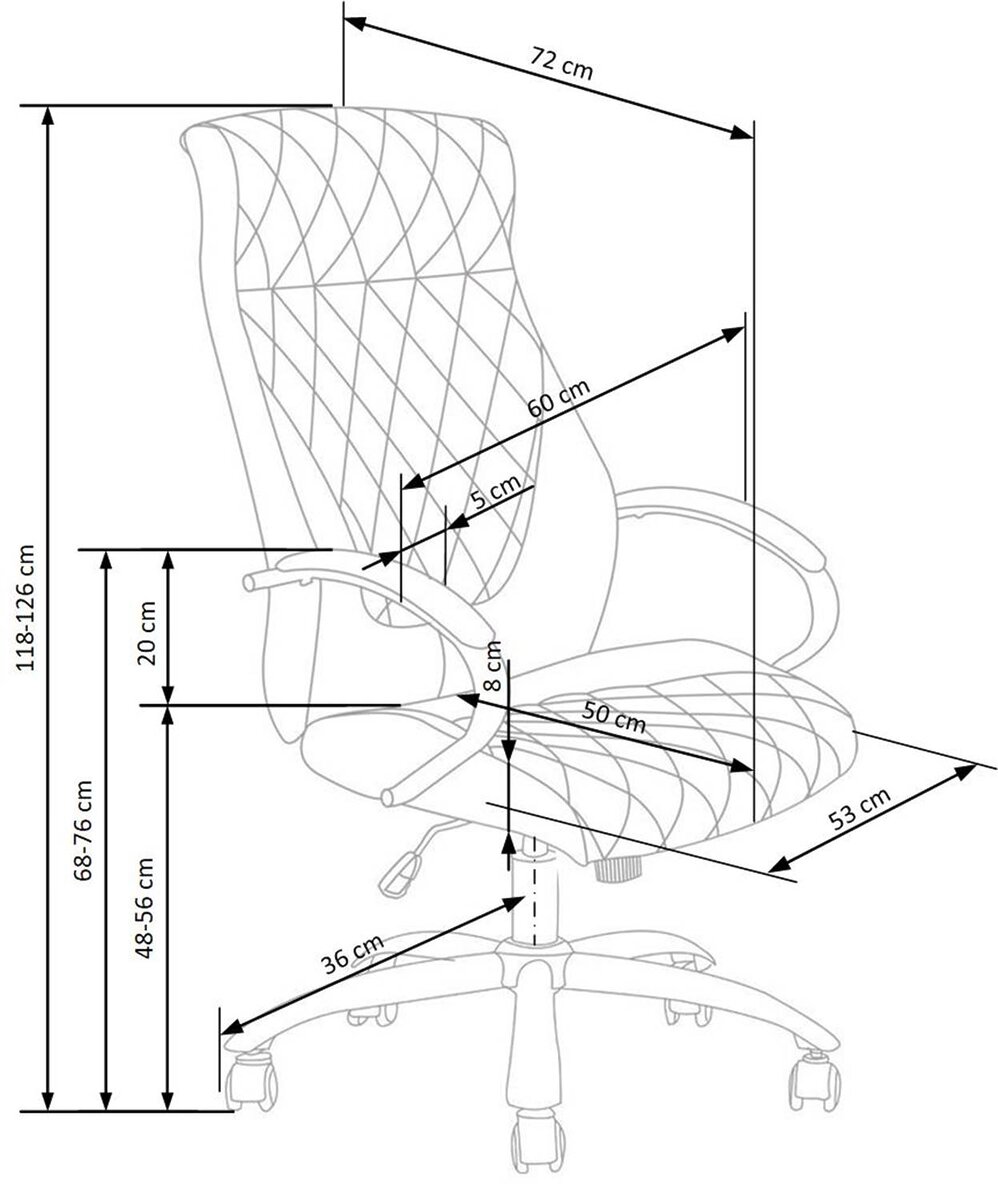 - Размери: дължина: 60 см, ширина: 72 см, височина: 118-126 см