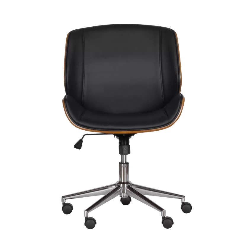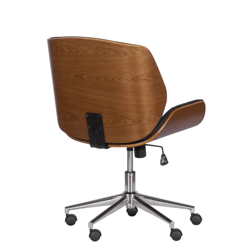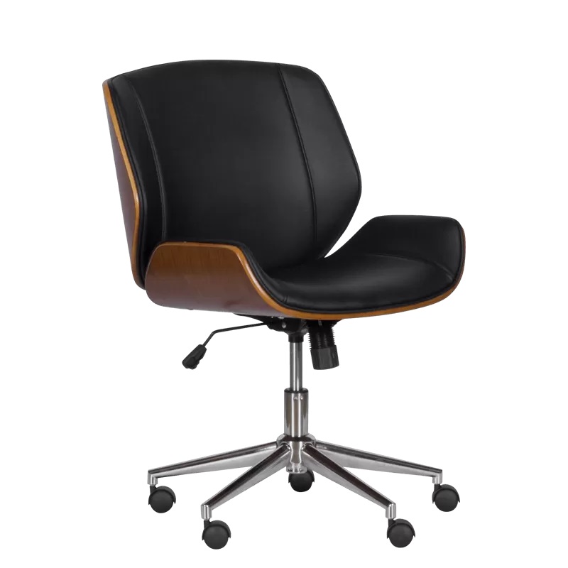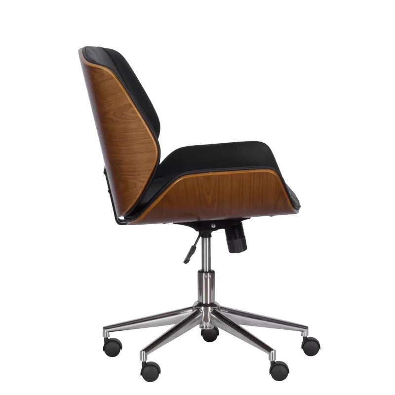 Офис стол от еко кожа и дърво в цветова комбинация орех с черно.