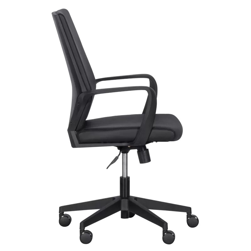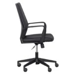 Офис стол от еко кожа в черен цвят разполага с люлеещ механизъм и газов амортисьор за регулиране на височината.