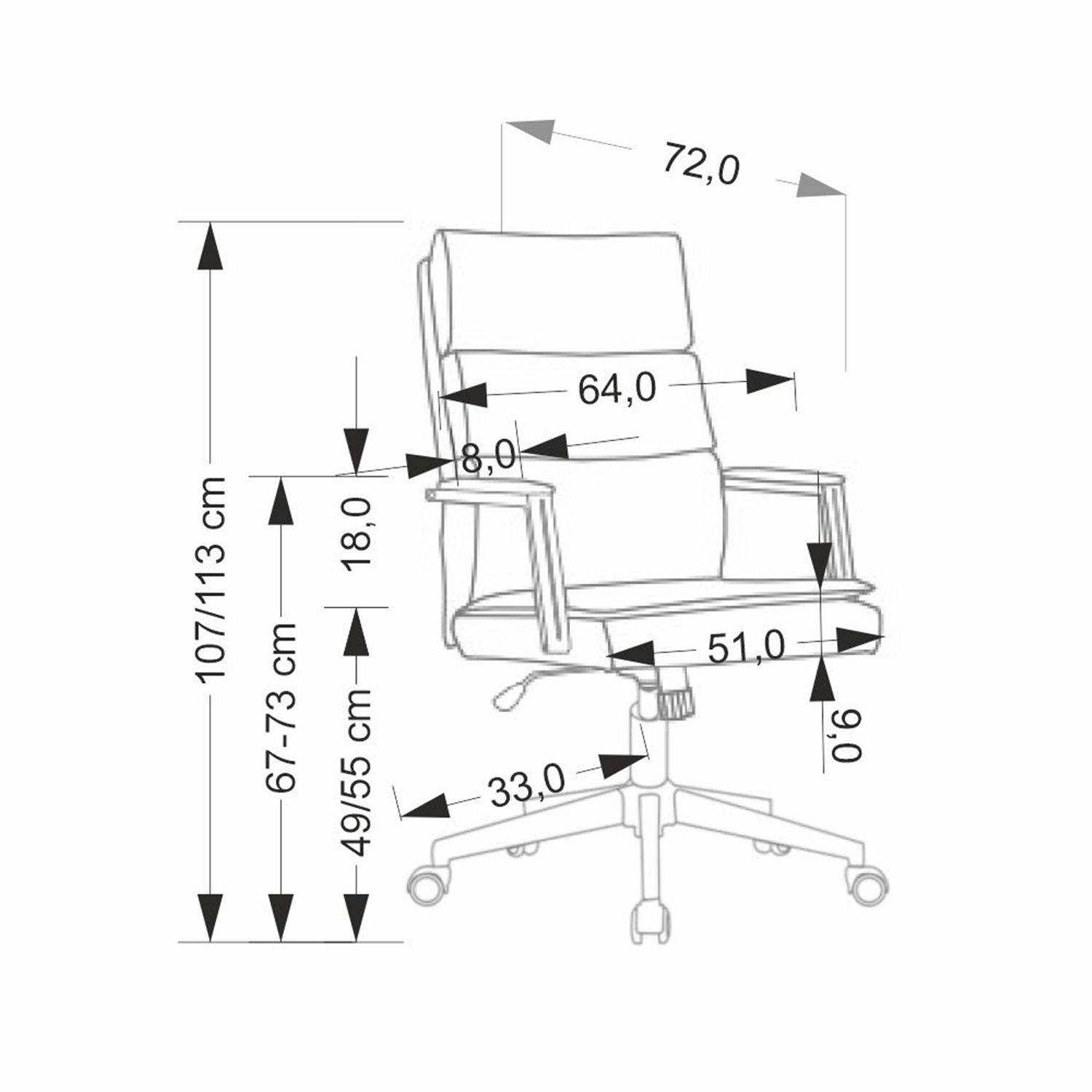 Практичен офис стол от еко кожа с подлакътници.