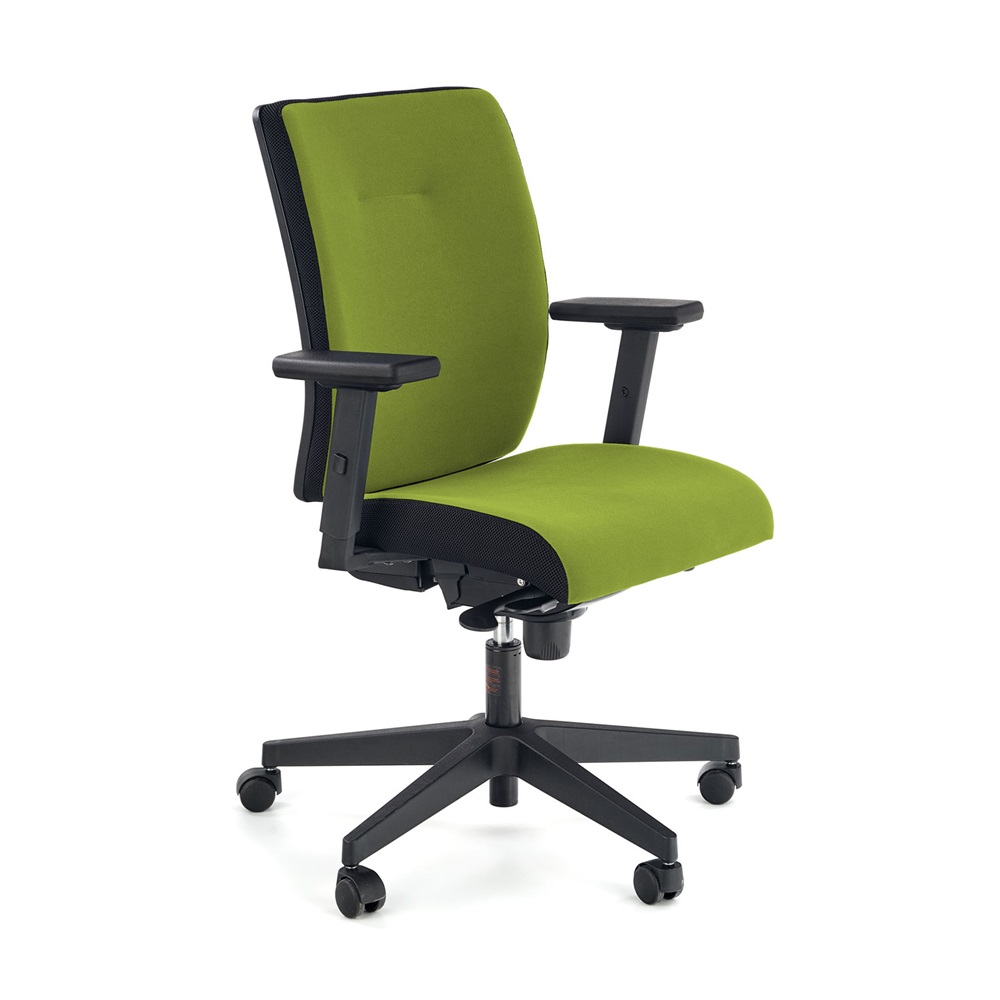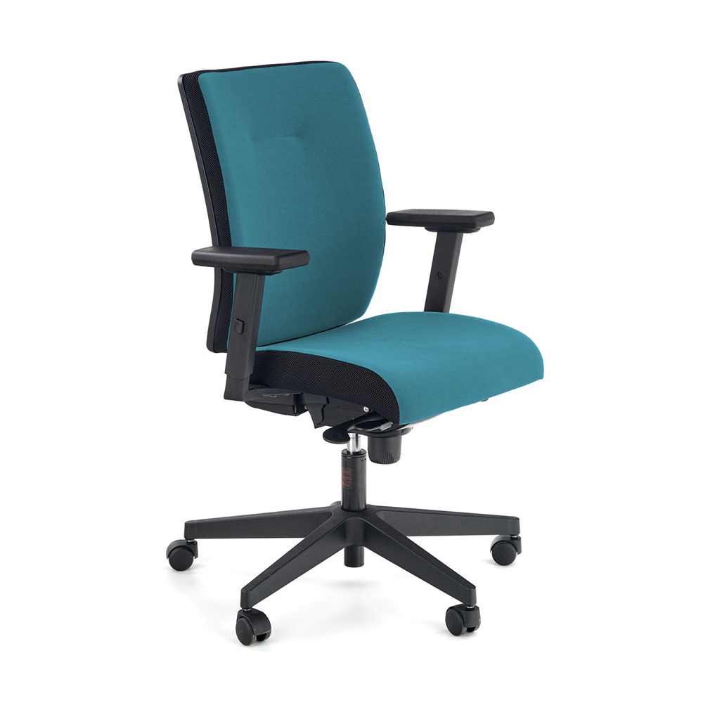 Офис стол с подвижна седалка и облегалка и регулируеми подлакътници в две степени.