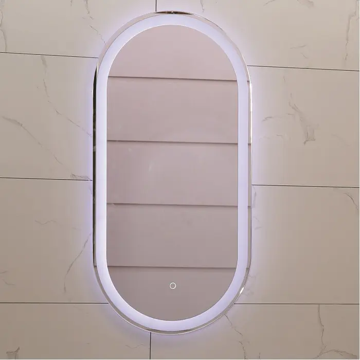 Овално огледало с вградено LED осветление, нагревател и активация чрез touch screen.