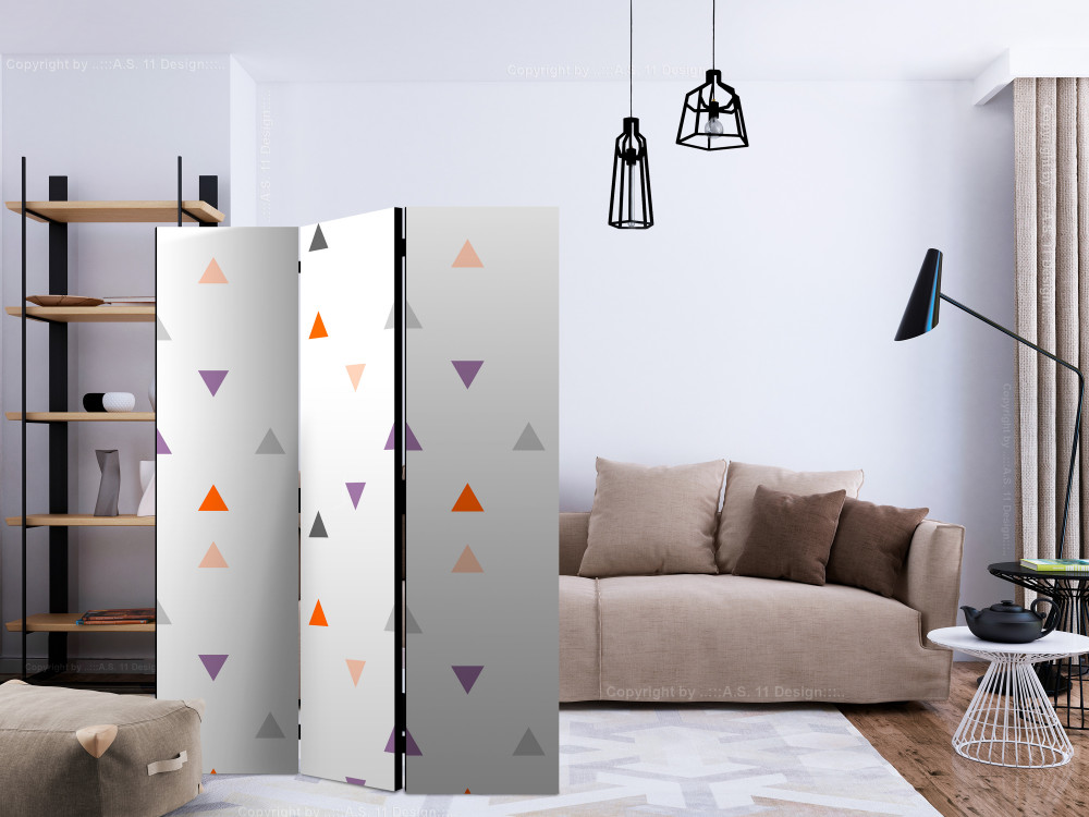 Двулицев интериорен параван с цветни триъгълници - трикрилен - интериор