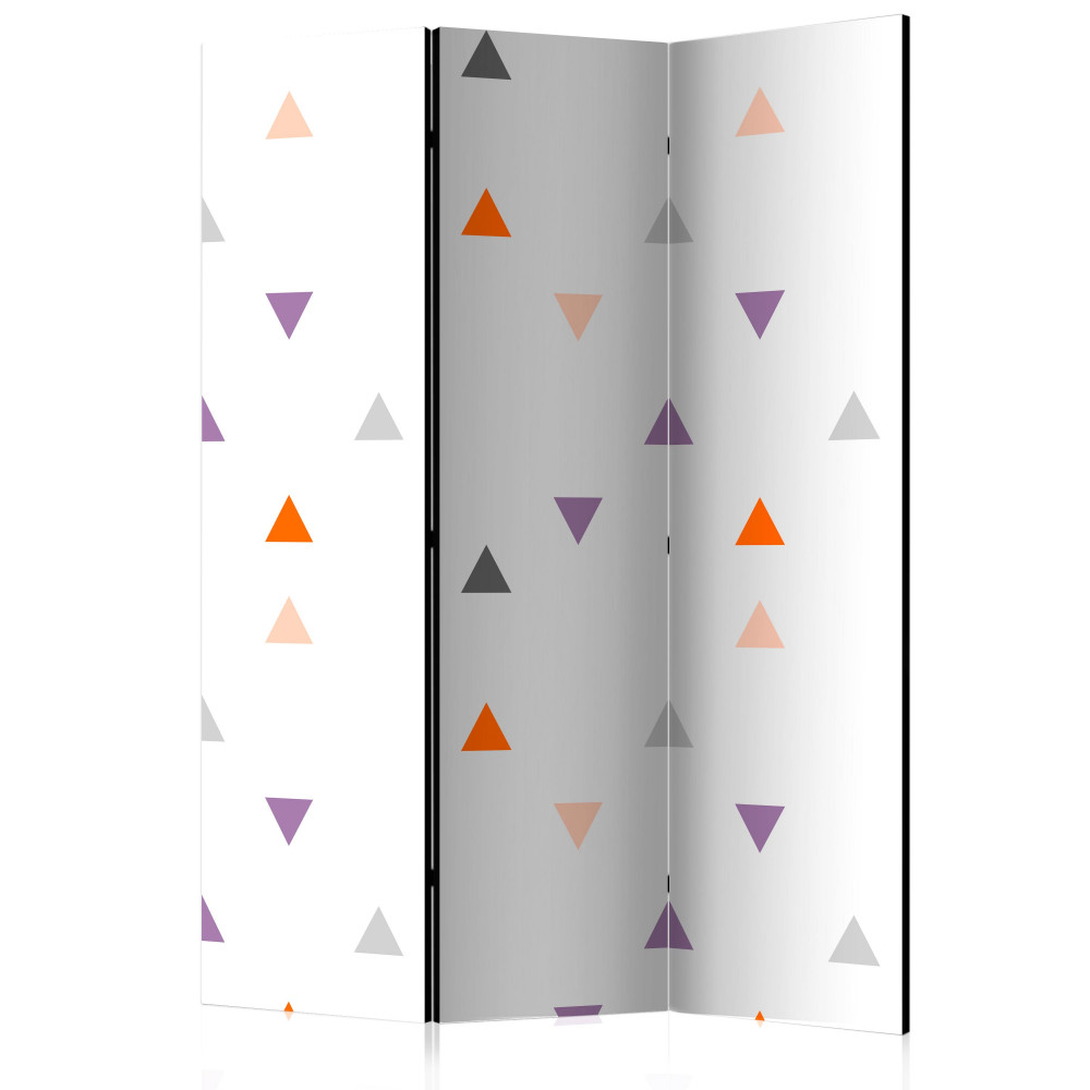 Двулицев интериорен параван с цветни триъгълници - трикрилен