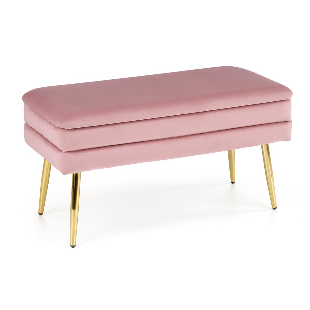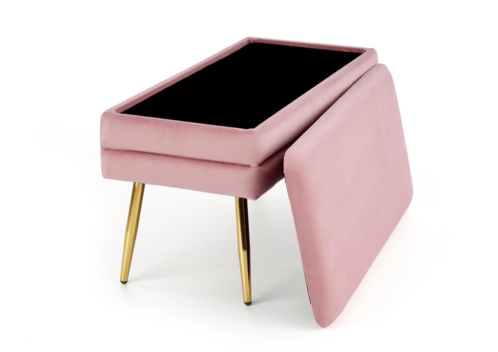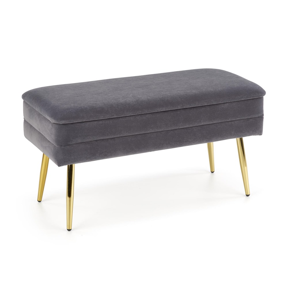 Пейка с място за съхранение и златисти крака от хромирана стомана.