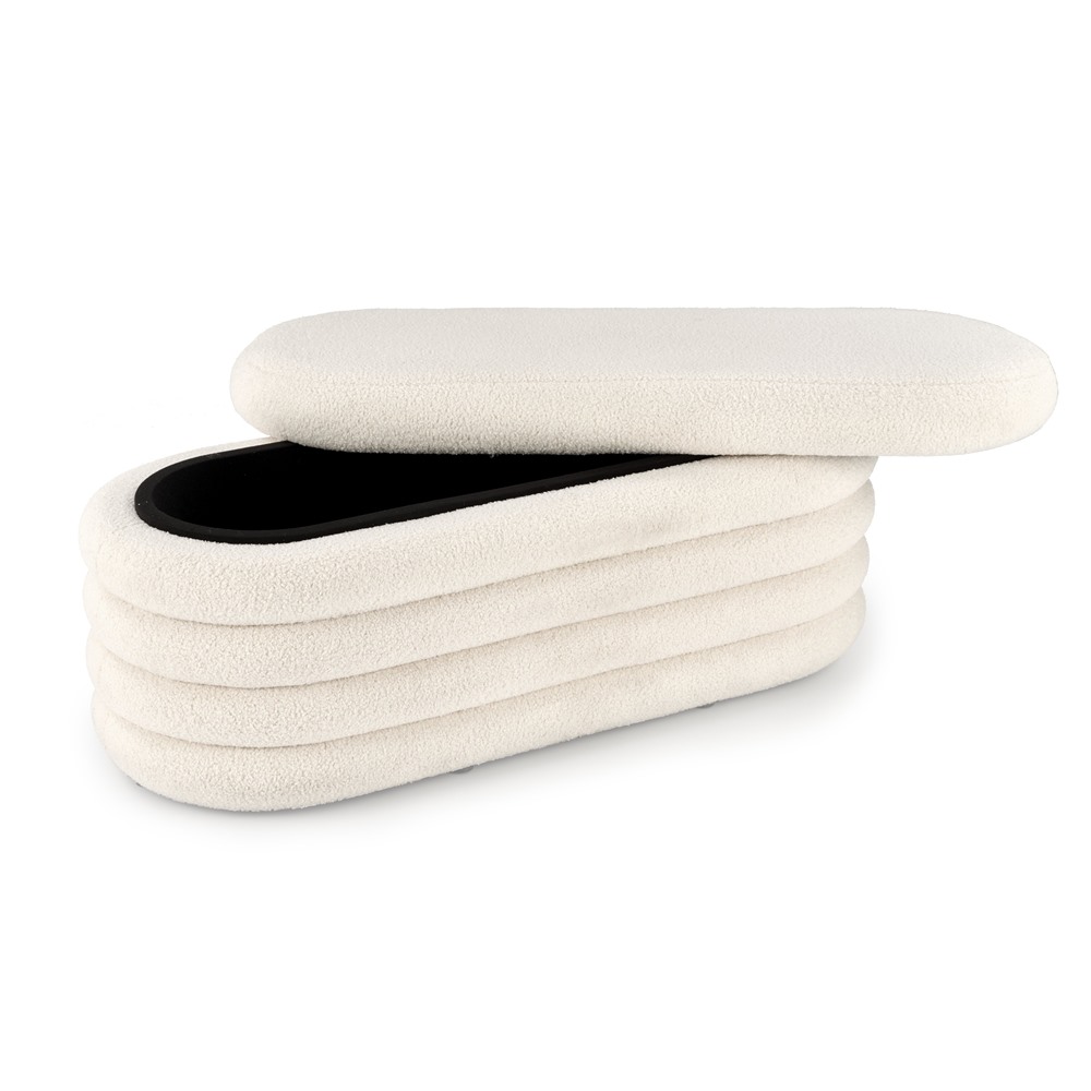 Нетрадиционна пейка с овална форма и място за съхранение.