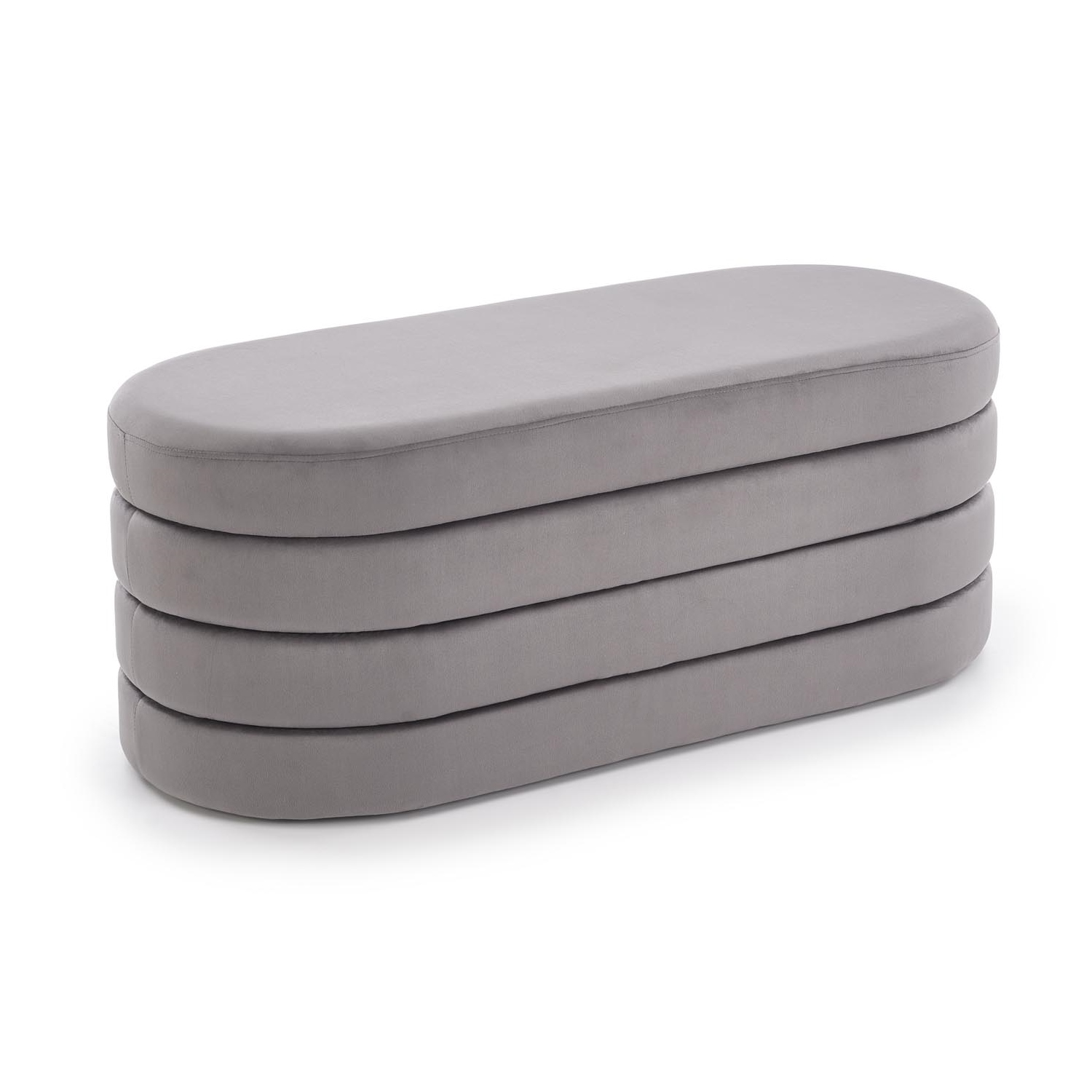 Стилна пейка с практично място за съхранение, подходящо за дребни вещи, одеяла или обувки, изработена с мека текстилна дамаска тип кадифе.