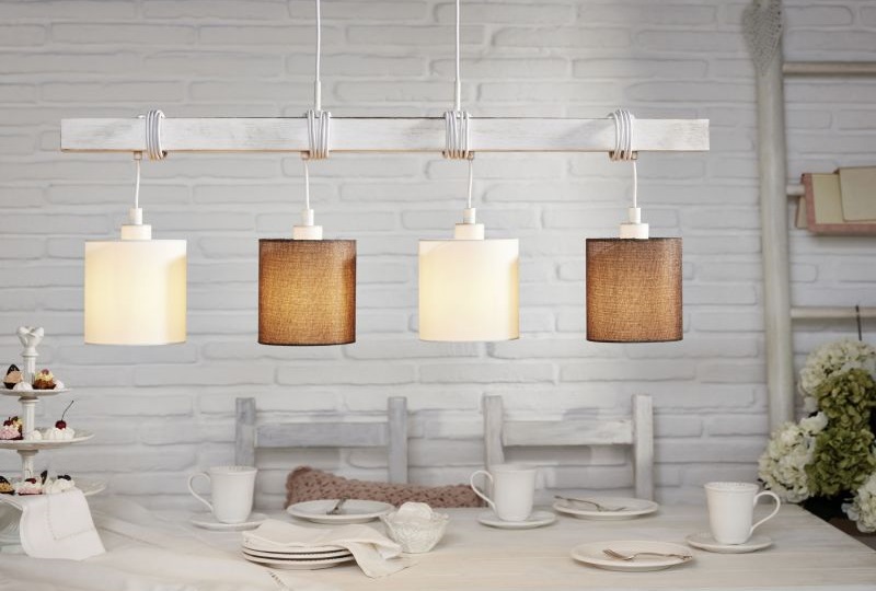 Елегантен пендел с четири тела в бяло и кафяво, Eglo серия Townshend 2.