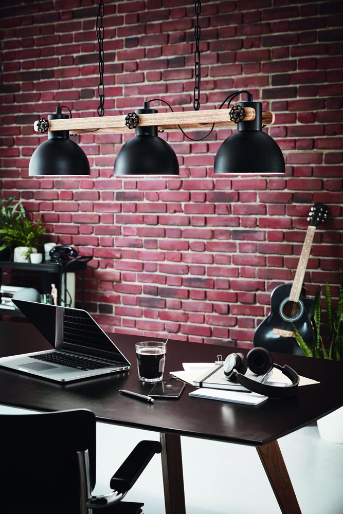 Почитател съм на всичко в индустриален стил и с такава визия. Този пендел с трите тела го поръчах преди време – отлично попадение за осветление над бар плота.