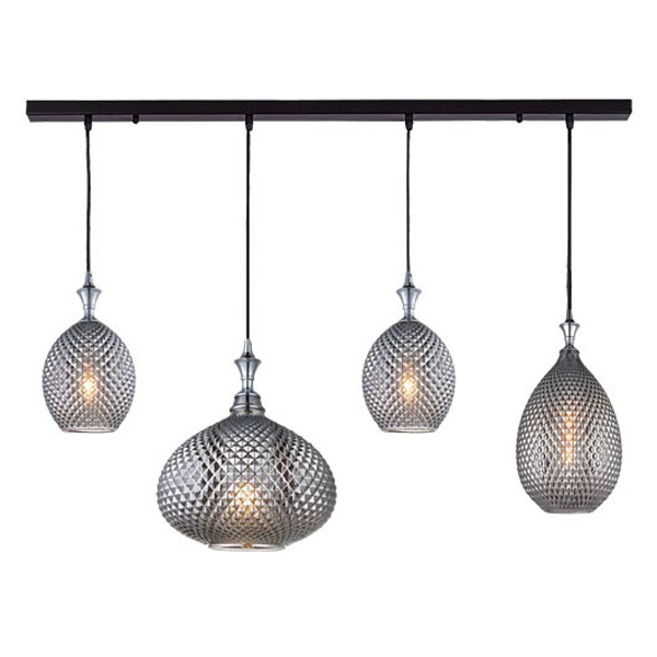 Пендел в ориенталски стил с продълговата основа в черно и четири стъклени тела с набраздена структура в опушено сив цвят и декоративни метални елементи Zambelis, серия Dubbo.