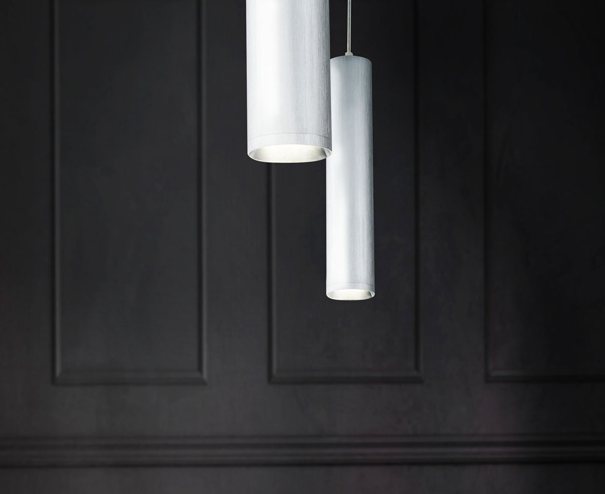 Модерен пендел, изработен от алуминий с кръгла основа и цилиндрично тяло Maytoni, серия Shelby.