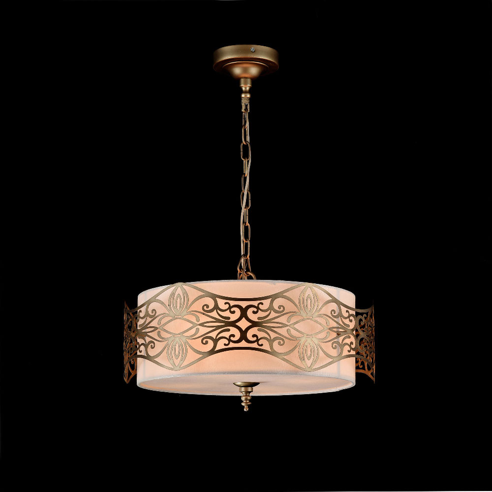 Пендел с метална основа на верига и декорация в цвят бронз около текстилна шапка в цвят крем Maytoni, серия Burgeon.