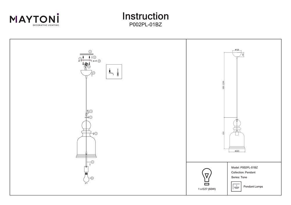 Пендел с кехлибарено тяло Tone - вариант 2 - схема