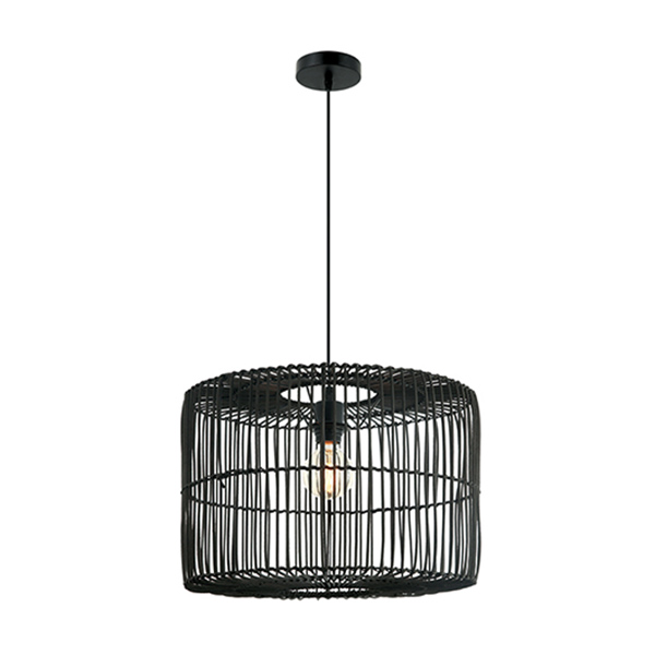 Стилен пендел с кръгла метална основа, регулируема височина и шапка от ратан в черен цвят Zambelis, серия Logrono.