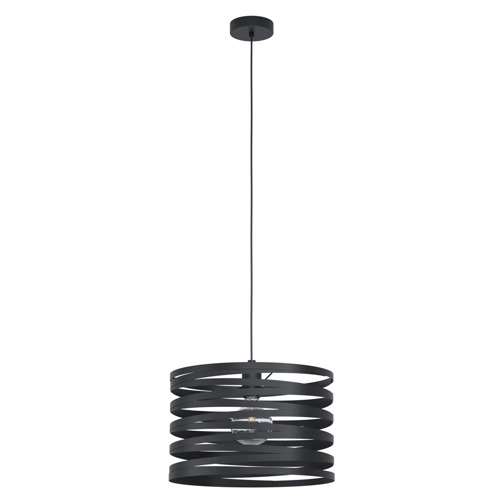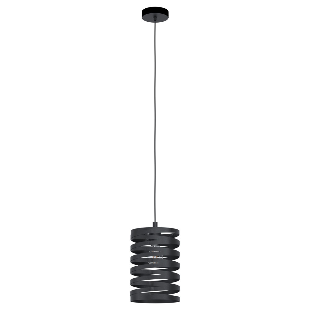 Пендел, изработен от стомана със спираловидно тяло в черно, Eglo, серия Cremella.