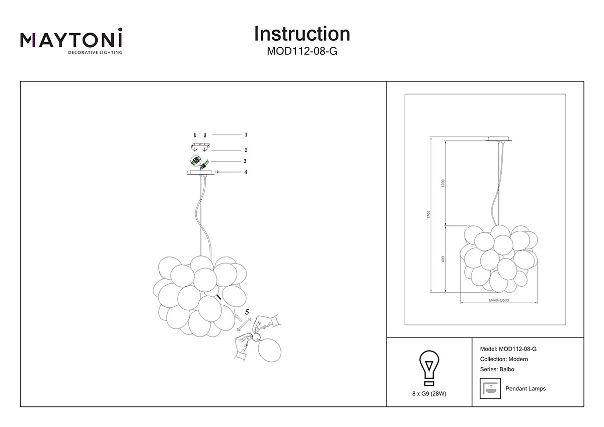 Пендел със стъклени сфери Balbo - схема
