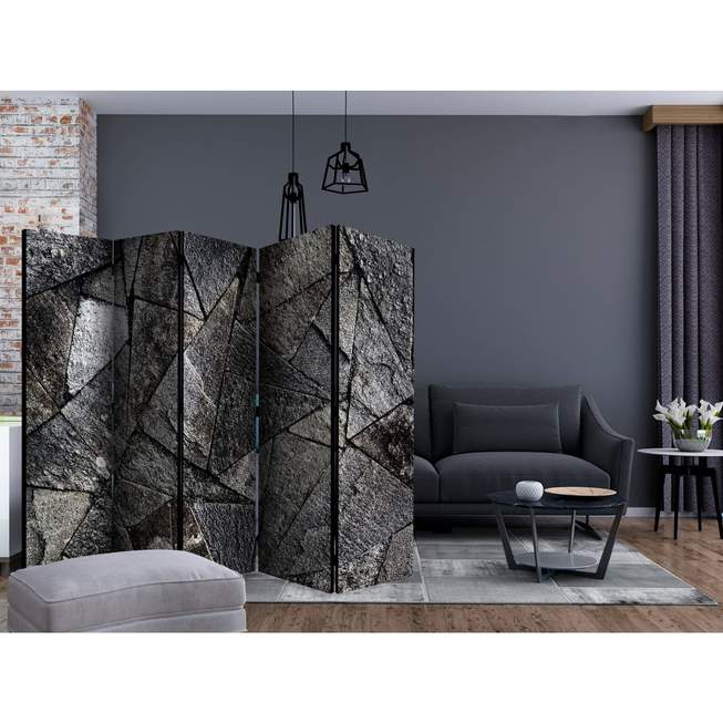 Този декоративен параван с каменна настилка в сиво и черно е оригинална декорация за интериор, решен в модерен или индустриален стил. Изработен е от дървена рамка с двустранен печат върху флизалиново платно. Благодарение на оригиналния мотив с качество на печата Full HD, този параван ще придаде неповторим чар на всяко помещение!