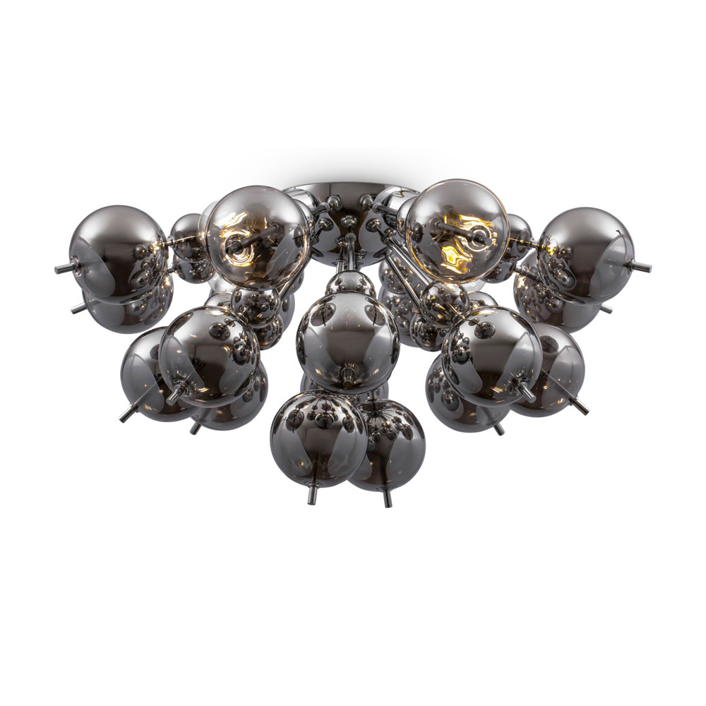 Луксозен плафон с множество кръгли елементи от духано стъкло с поцинковано покритие Maytoni, серия Bolla.